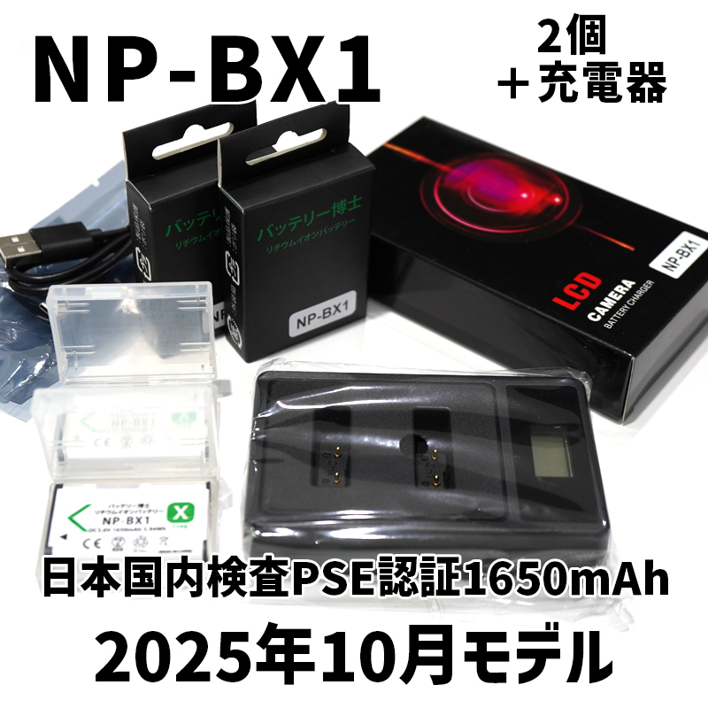 PSE認証2025年10月モデル 互換バッテリー NP-BX1 2個 + USB急速充電器 DSC-RX100 M7 M6 M5 M3 M2 HX99 HX300 HX400 CX470 WX500 AS50 ZV-1