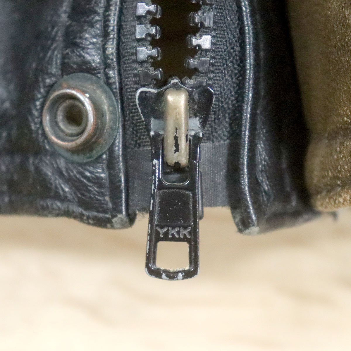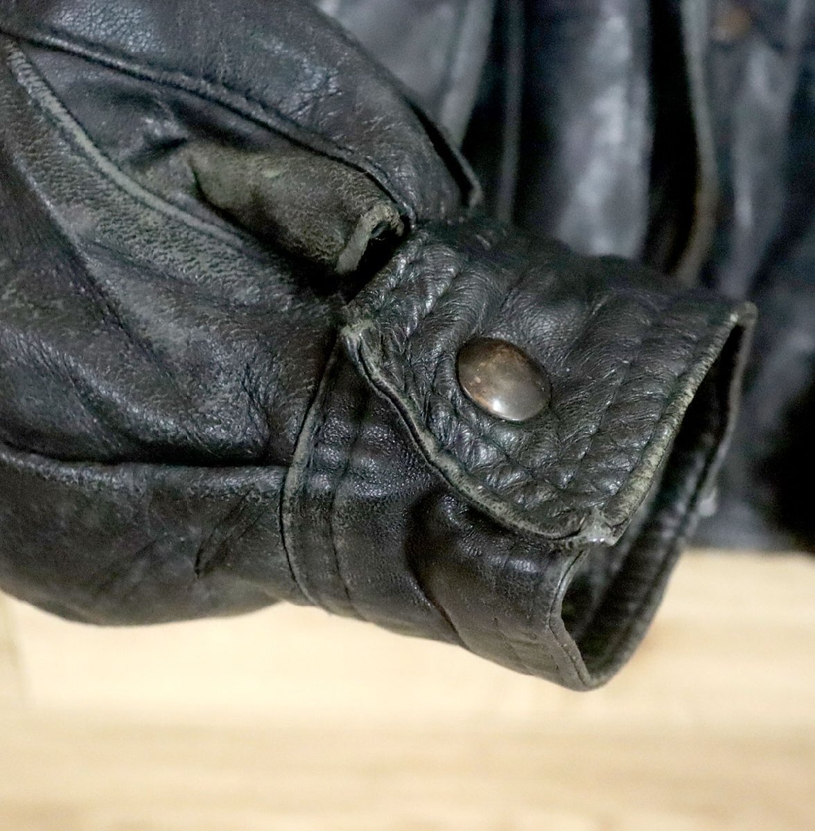 中古品です。使用感があります。袖先など各所にレザー特有の擦れや色褪せがあります。