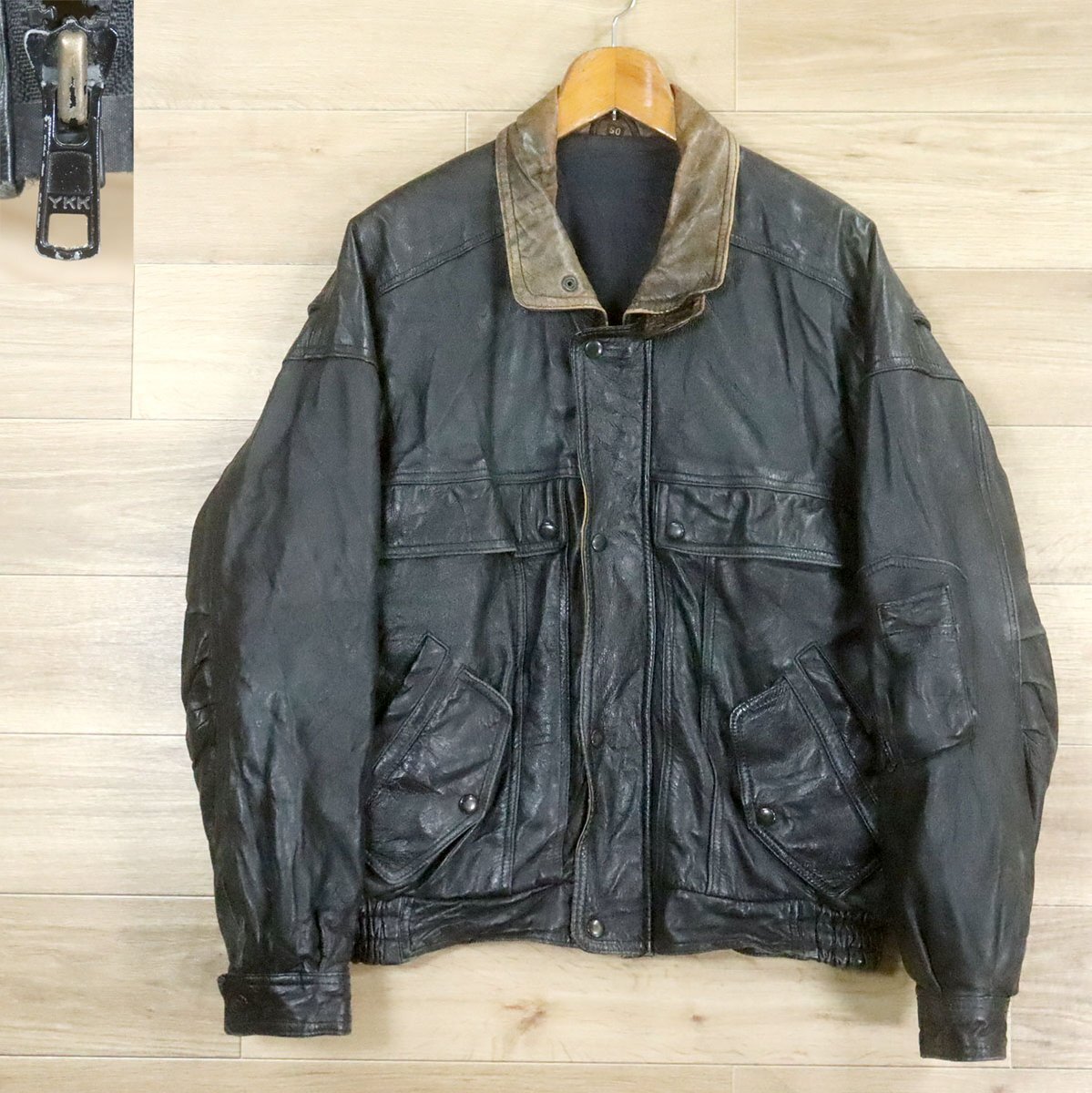 %6D/O9.25-8 ユーロ古着 レザージャケット ボンバージャケット スタンドカラー 本革 革ジャン 皮ジャン ユーロヴィンテージ