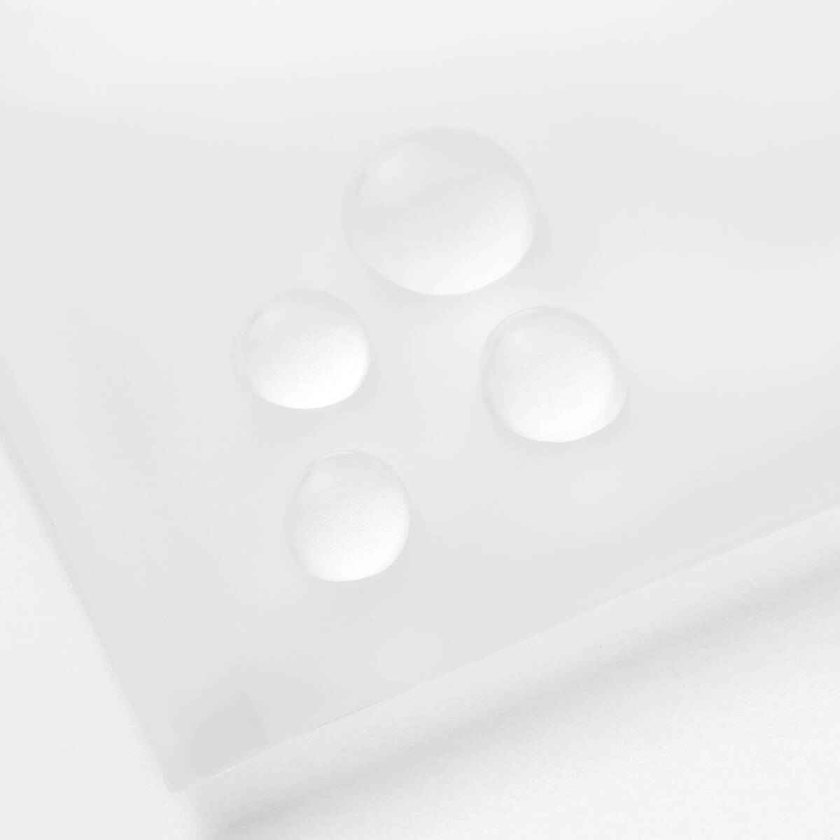 洗面ポーチに使われる、水に強く透明な素材です。仕分けや汚れ物の持ち帰りなどにも便利です。