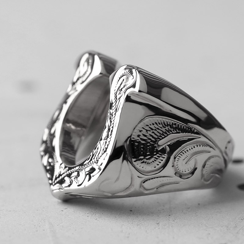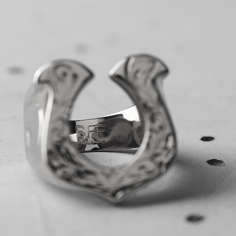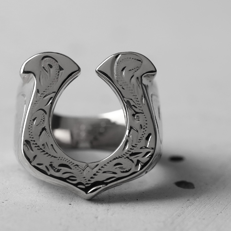 | 商品概要 | ■ホースシュー×ハワイアンテイスト ホースシュー(馬蹄)デザインのリングにハワイアンテイストを取り入れた珍しいデザインのリング。マイレやスクロールなどハワイの雰囲気を楽しめるデザインを表面にレリーフ。 |
