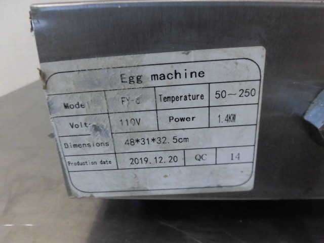 中古厨房 卓上 電気 Egg Machine エッグマシン FY-6 ワッフルメーカー 100V ワッフルマシーン ベビーカステラ スイーツ 2019年製