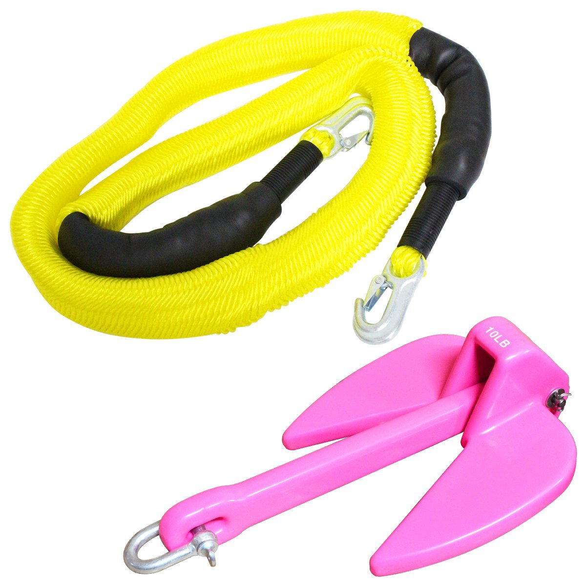 『伸縮ロープ/アンカーセット』爪型 アンカー 10LBS 4.5kg ピンク 6M フロート のびのび アンカー ロープ 黄色