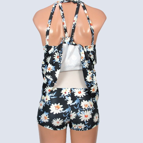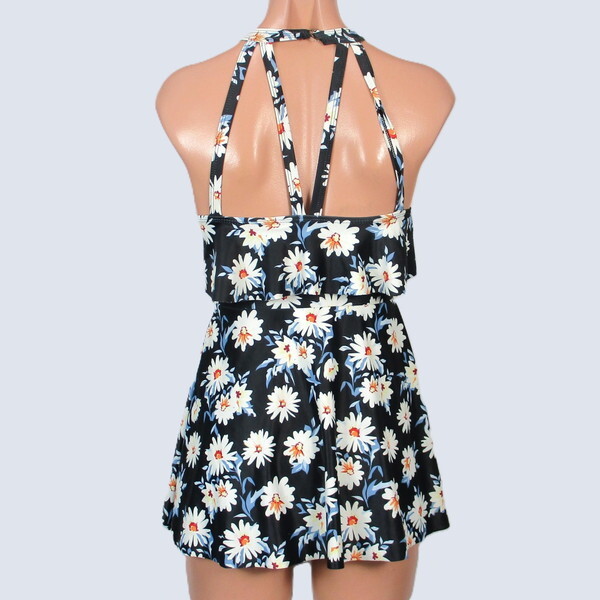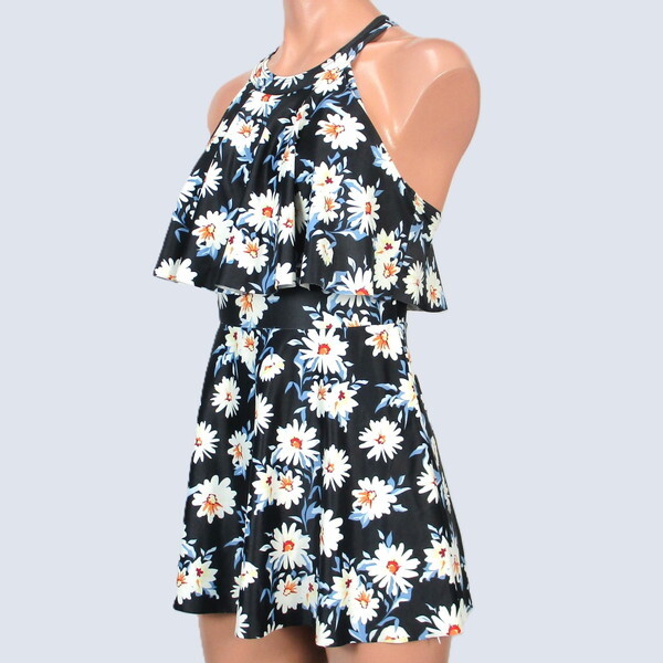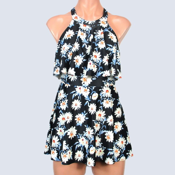 E8609★3L 大きいサイズ 水着 ワンピース レディース スカート 記名あり 花柄 ブラック 黒白 かわいい プール ビーチ 海 スイム