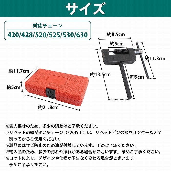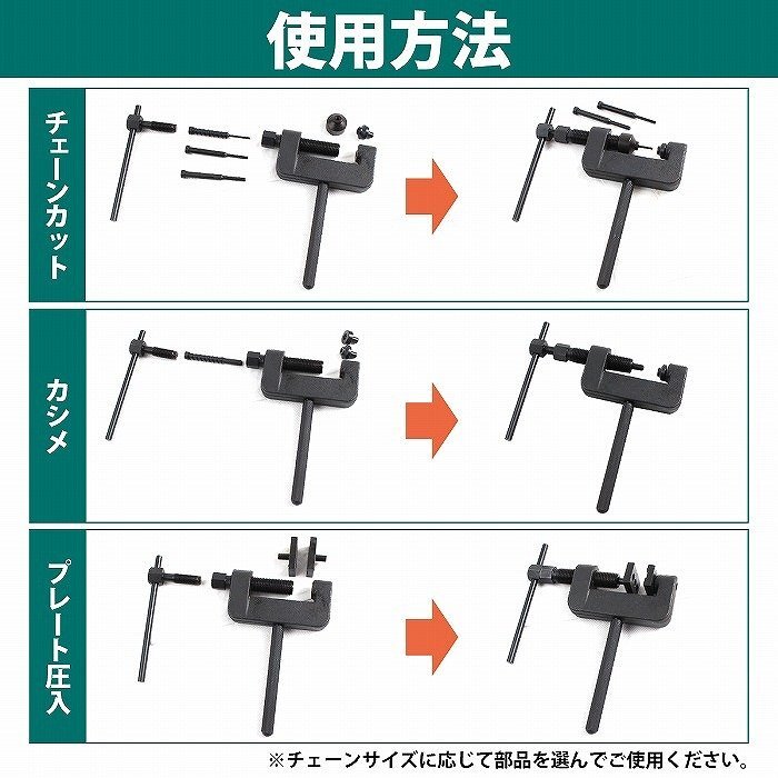 チェーンカッター カシメ 圧入 工具セット 自転車 原付 バイク バギー チェーン 長さ 調整 交換 420/428/520/525/530/630対応