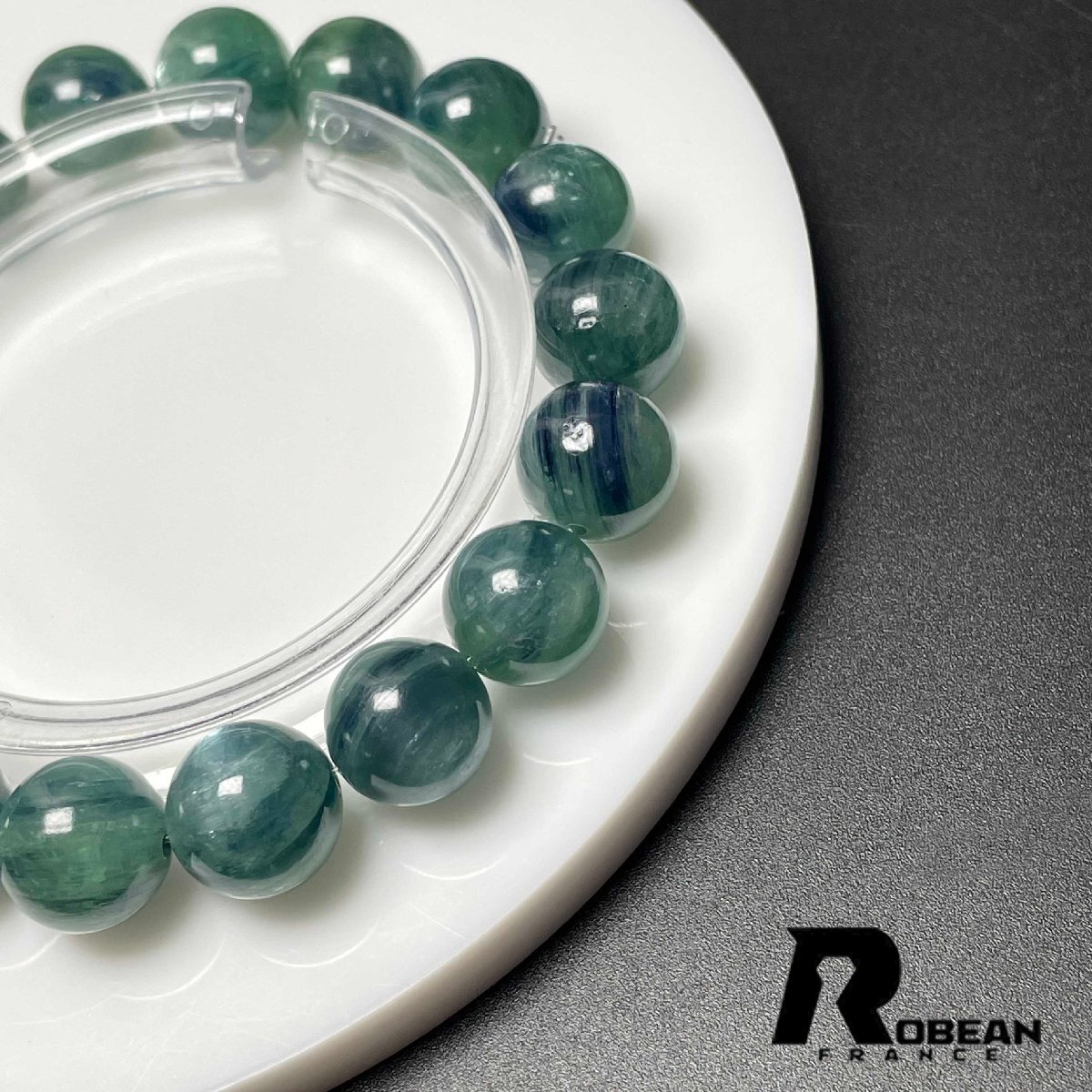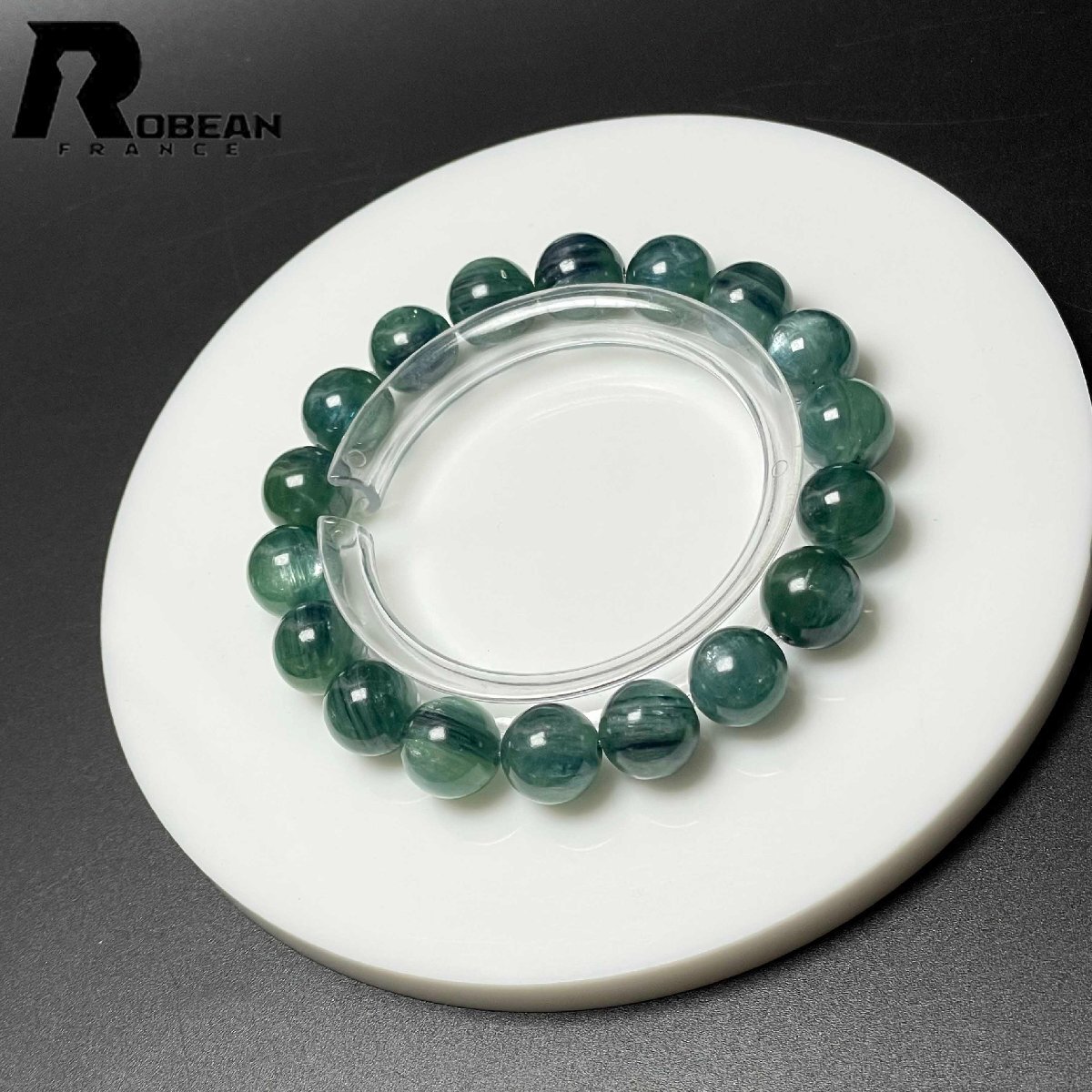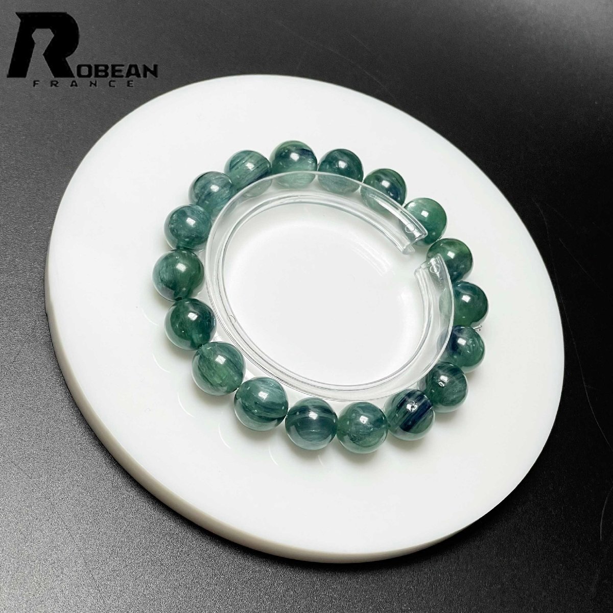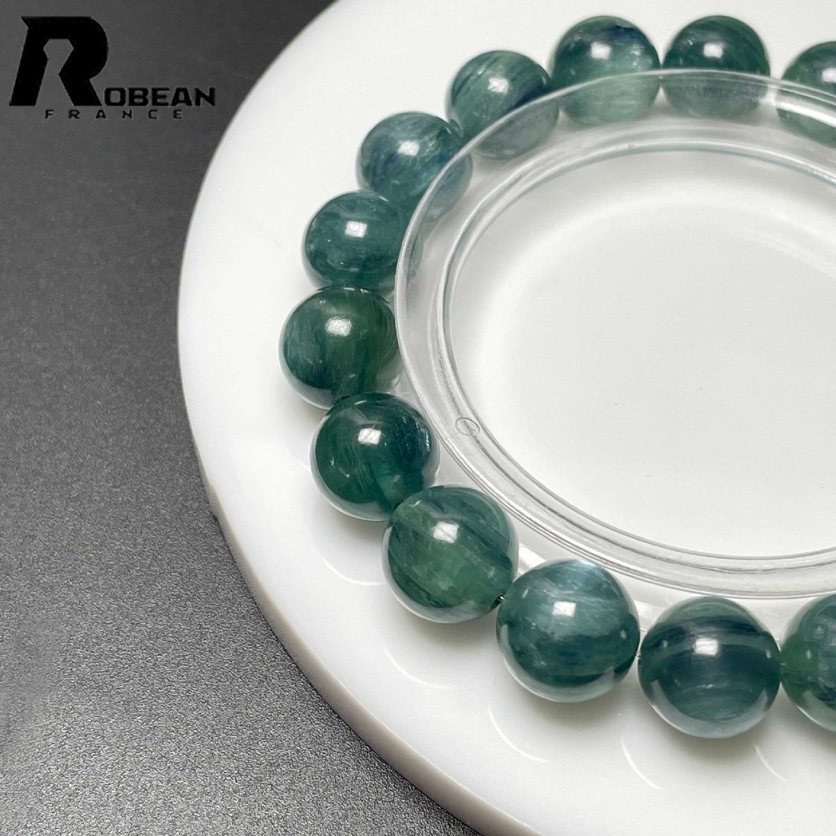 上級 EU製 定価14万円★ROBEAN・グリーン猫目カイヤナイト★天然無着色 ブレスレット パワーストーン 綺麗 浄化 癒し 10.7-11.2mm M0723956