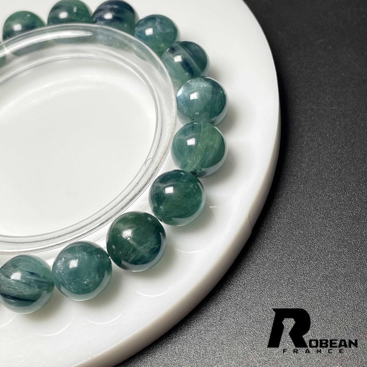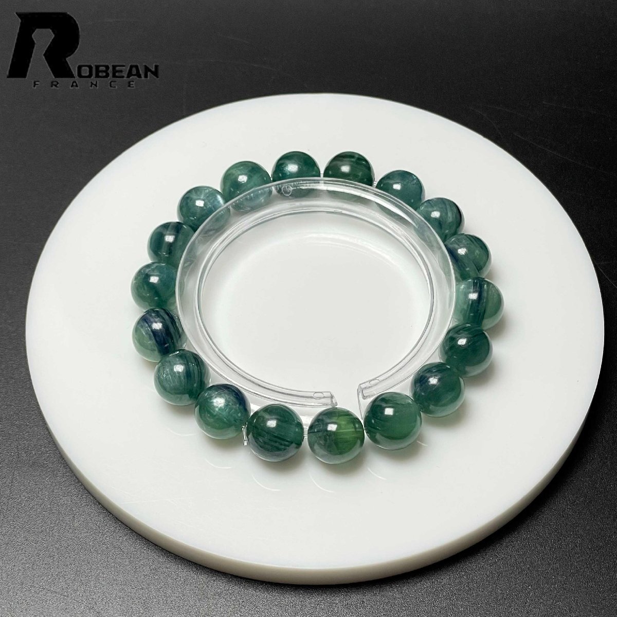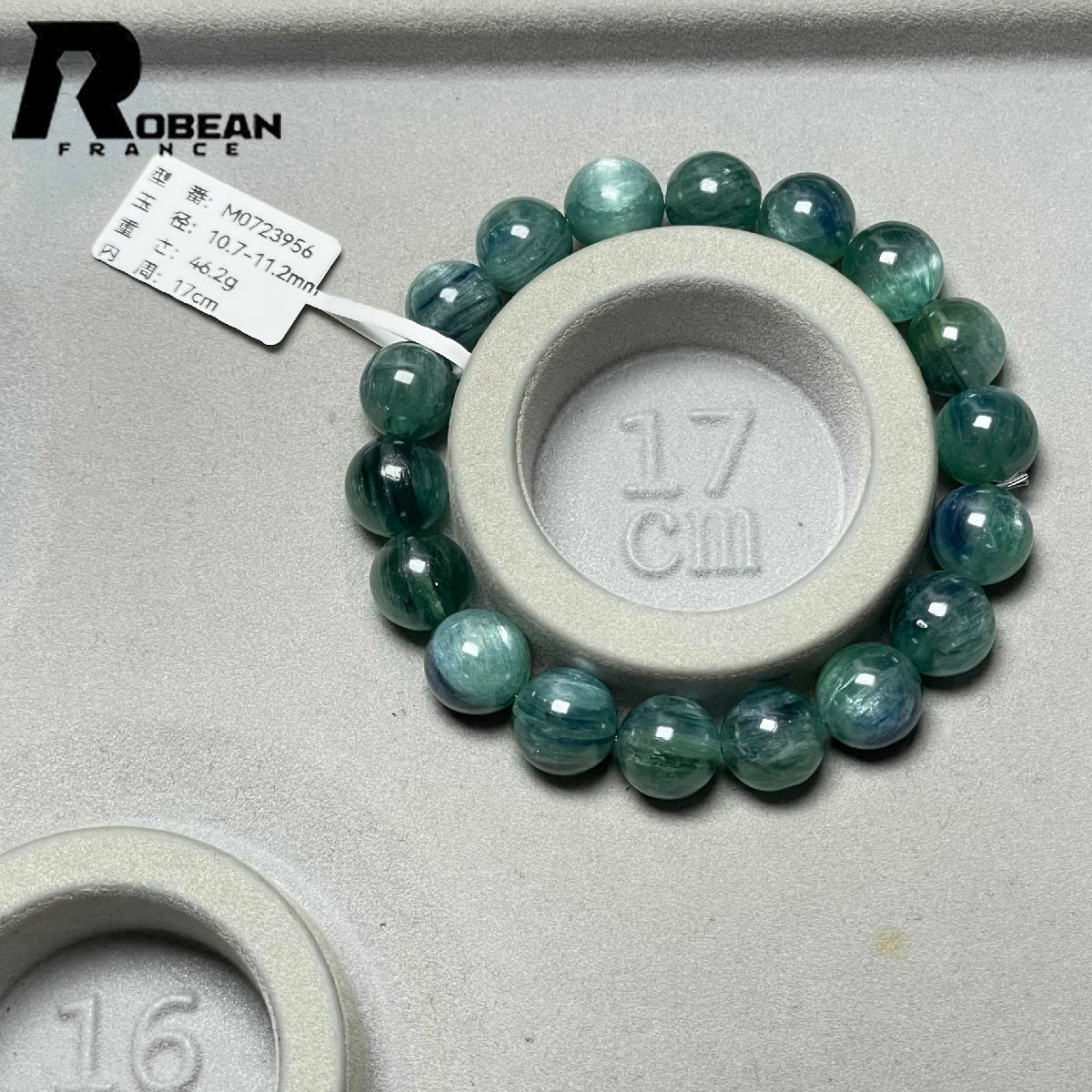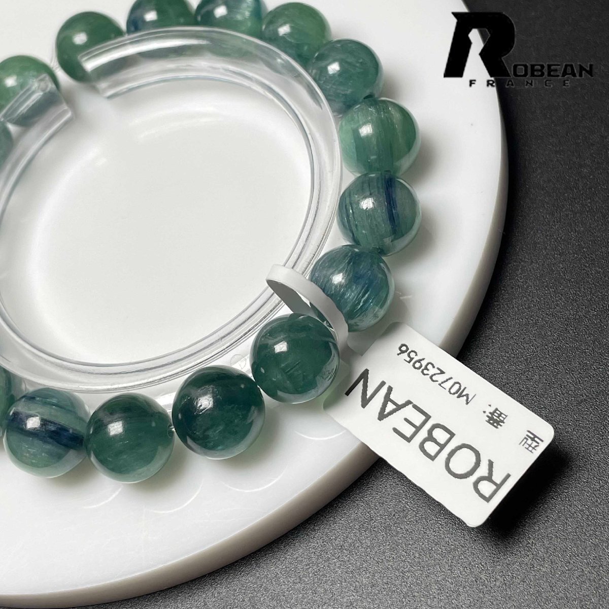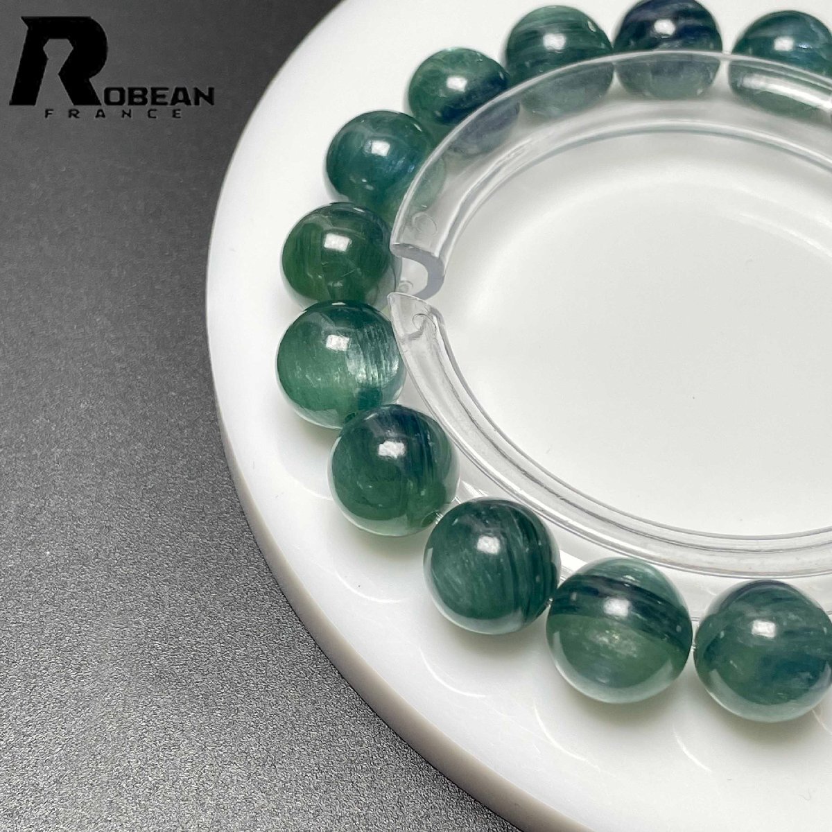 上級 EU製 定価14万円★ROBEAN・グリーン猫目カイヤナイト★天然無着色 ブレスレット パワーストーン 綺麗 浄化 癒し 10.7-11.2mm M0723956