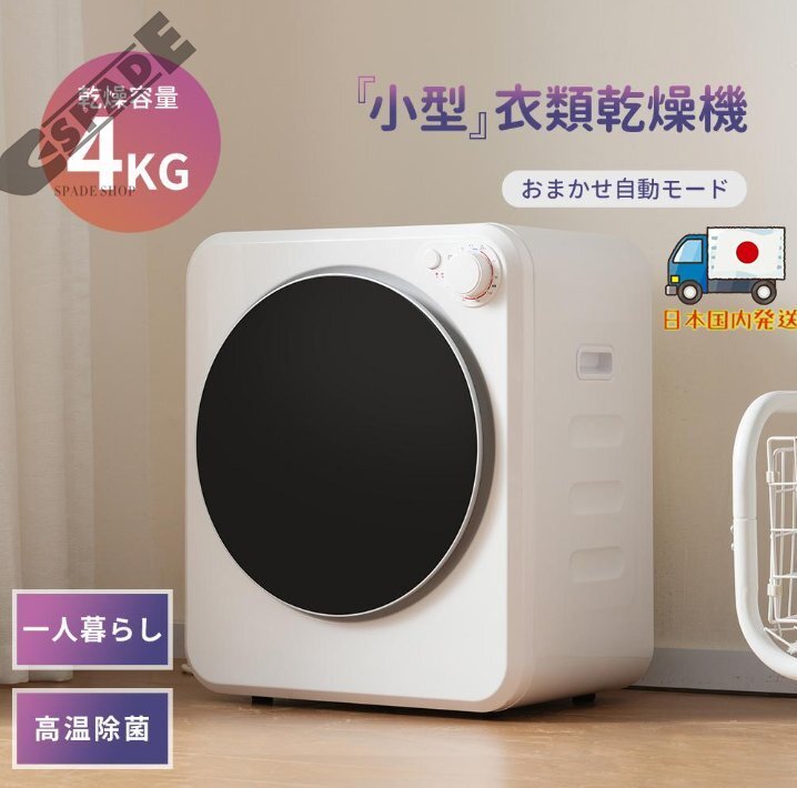 【国内発送】小型衣類乾燥機 衣類乾燥機 小型 乾燥機 衣類 4kg ミニ コンパクト 自動モード ドラム ダイヤル式 高温除菌 家庭用 一人暮らし
