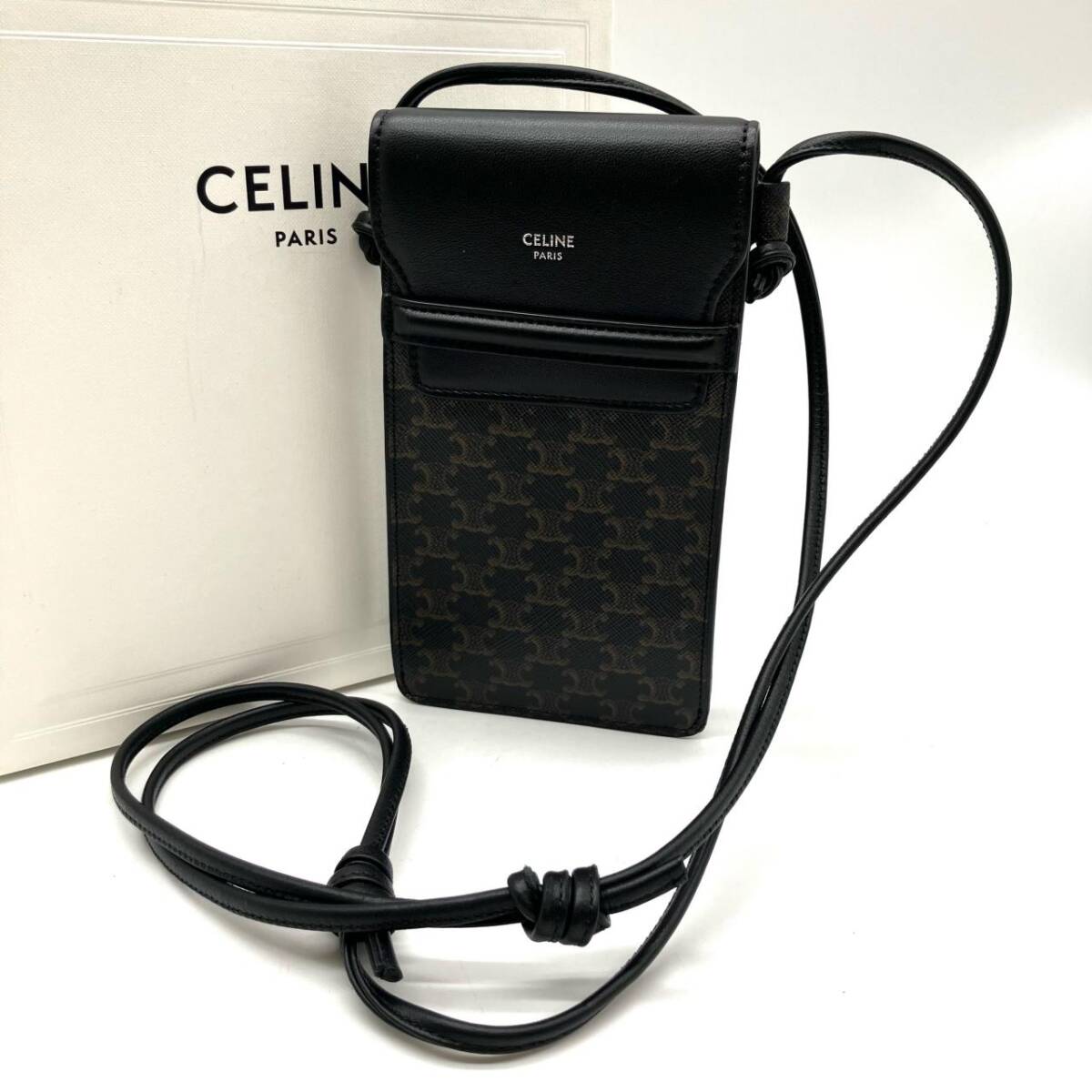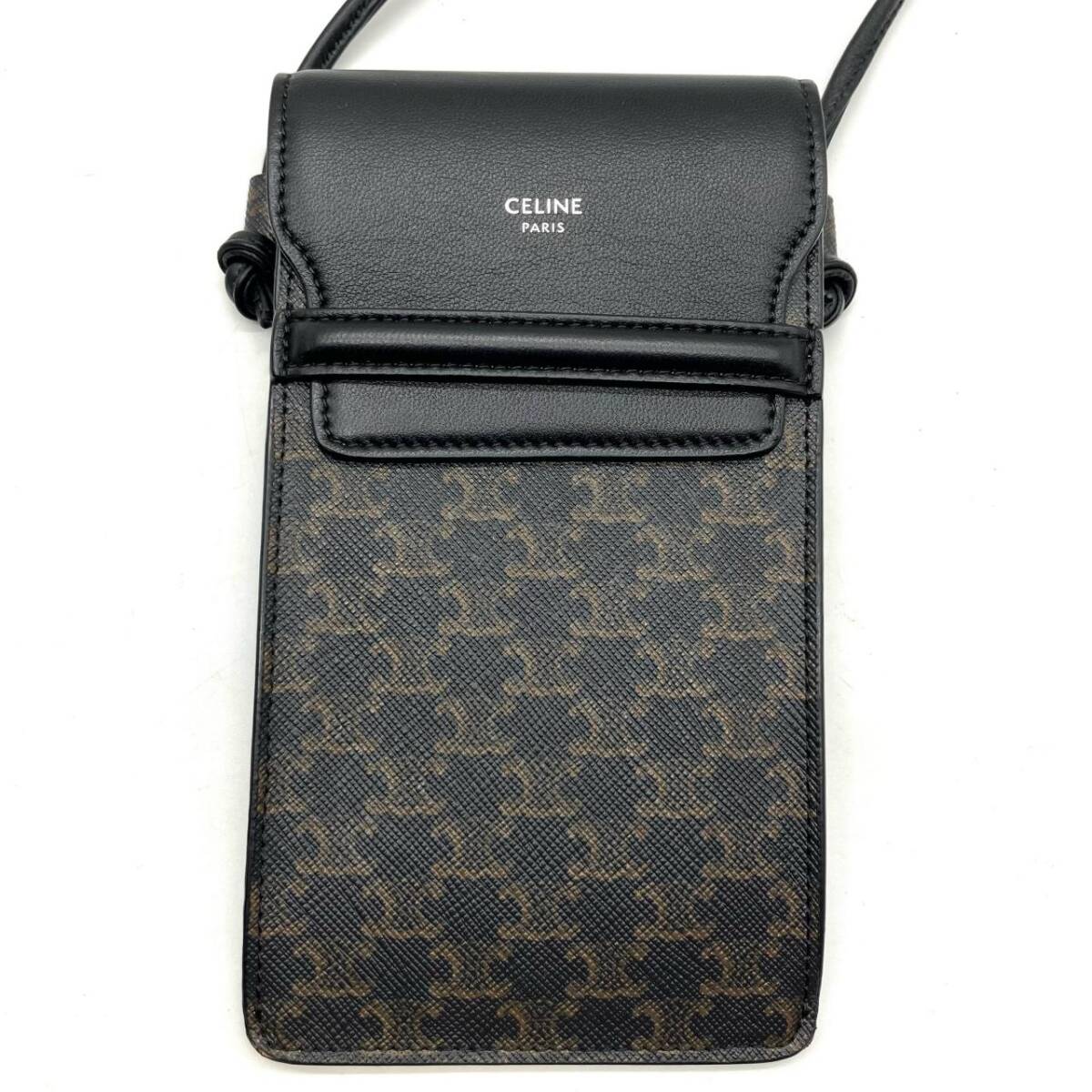 | 美品 CELINE セリーヌ トリオンフ モバイルショルダーポーチ PVC ブラック系 F-1P-1281 |