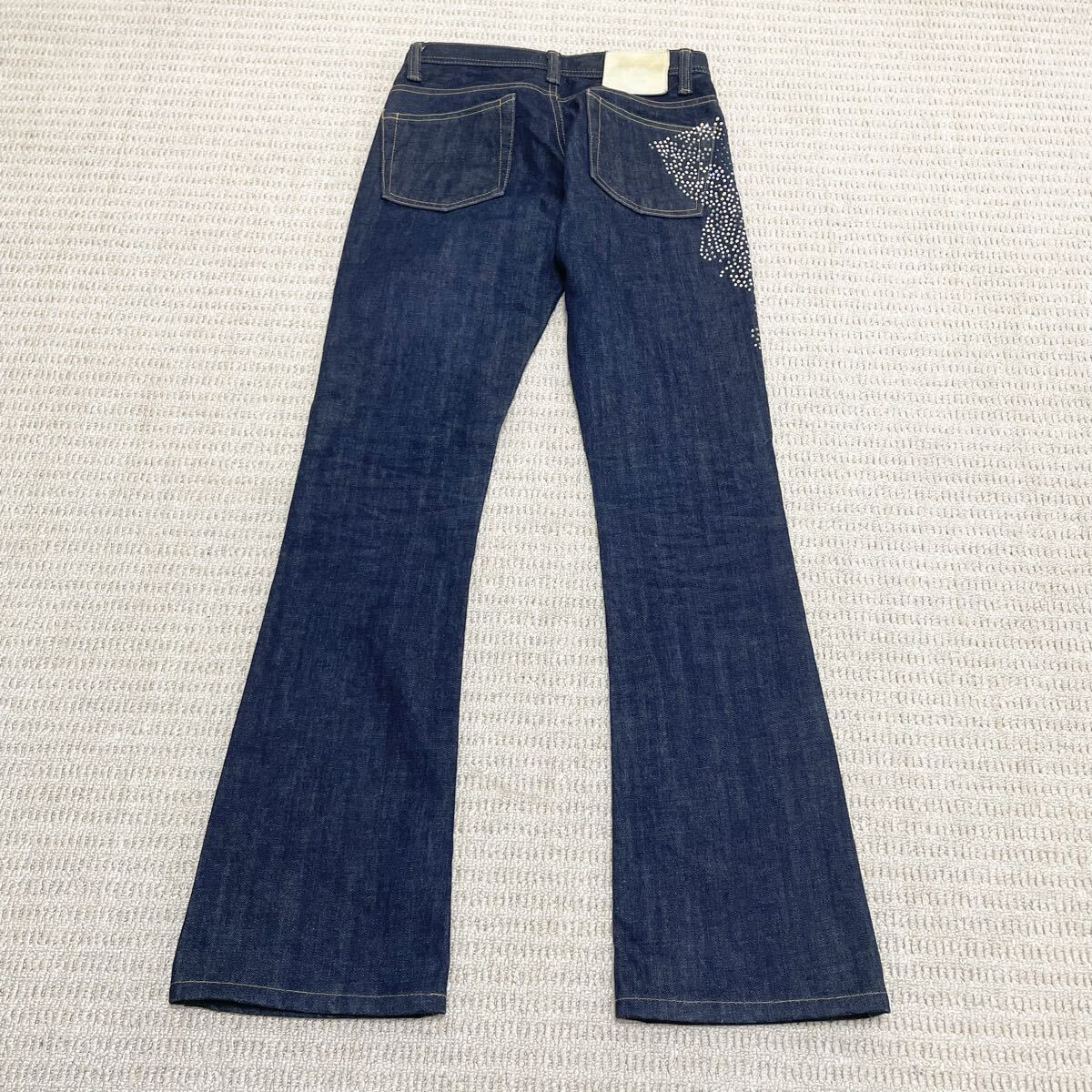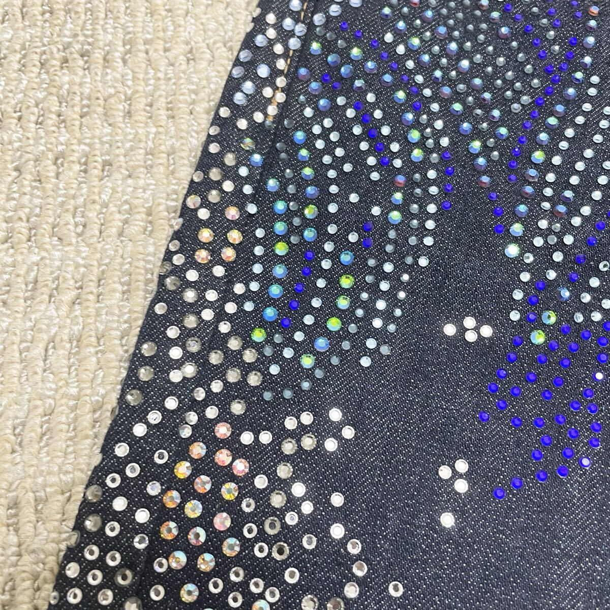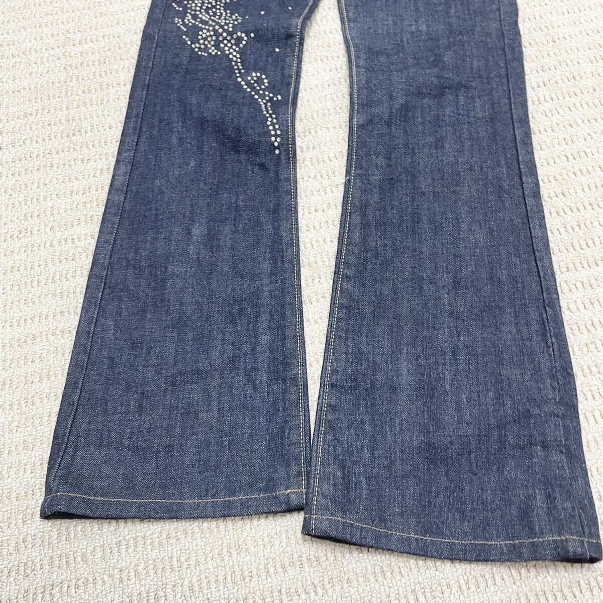 【 ソメのフレアデニム ラインストーンの装飾が特徴的】