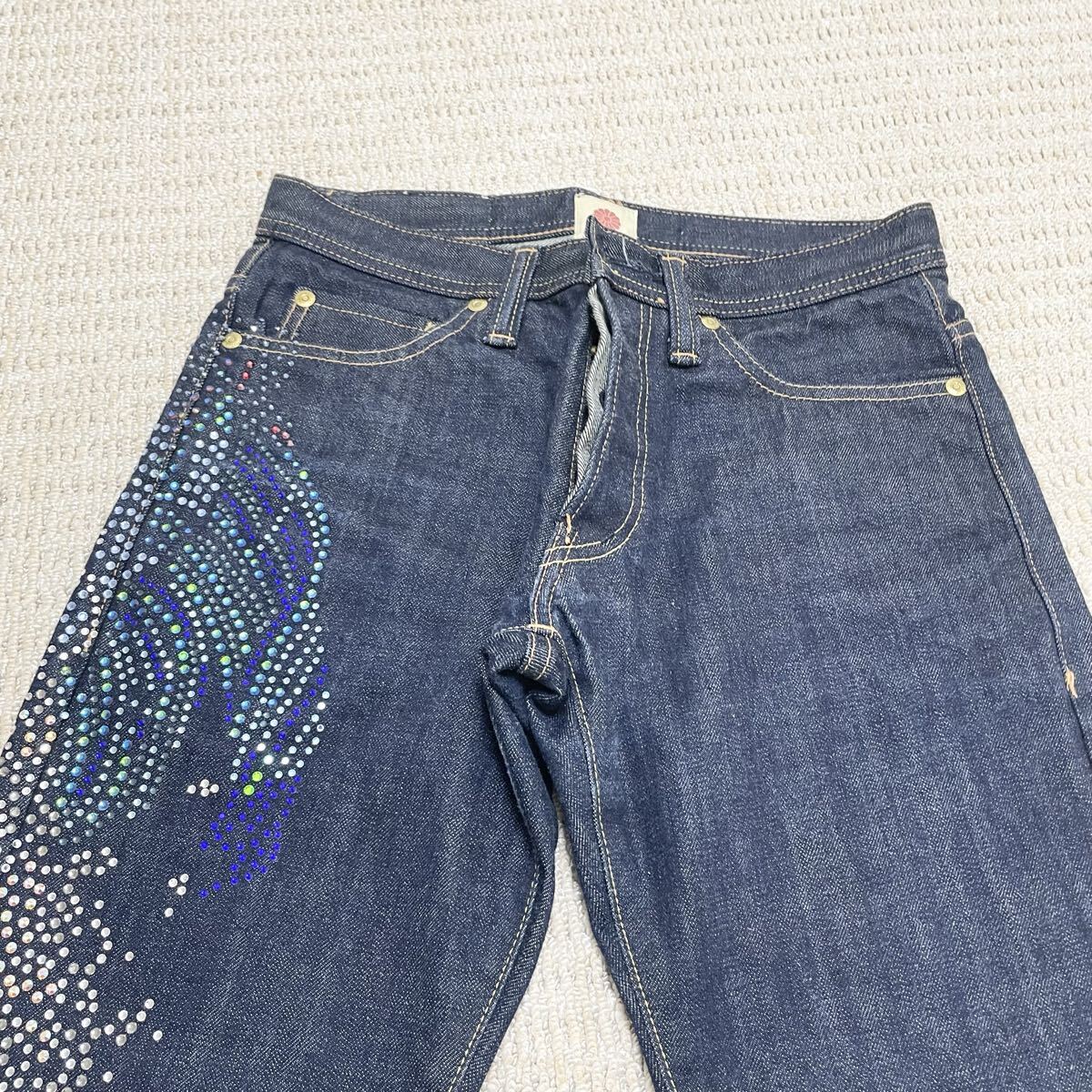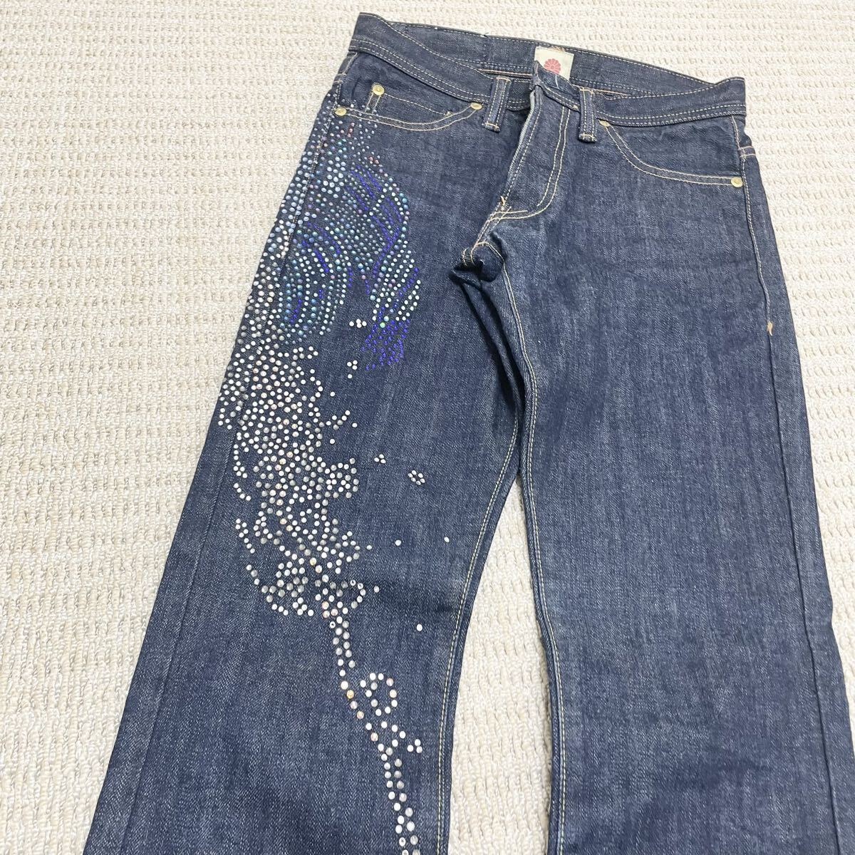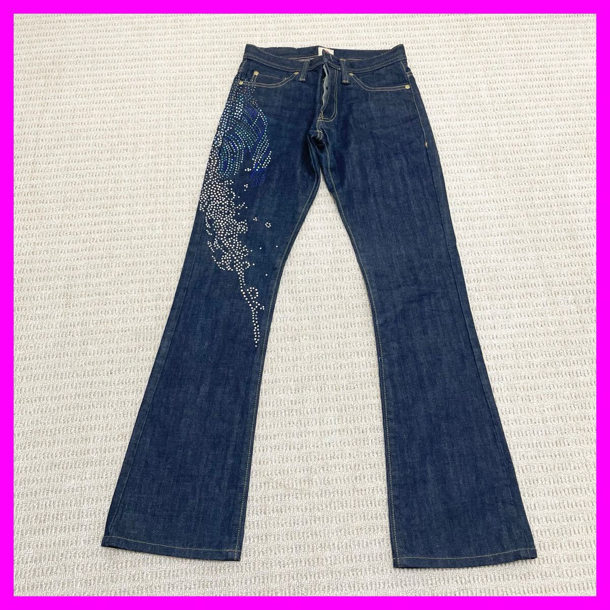【 ソメのフレアデニム ラインストーンの装飾が特徴的】