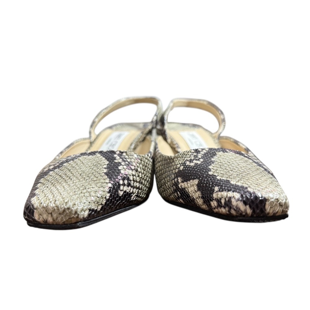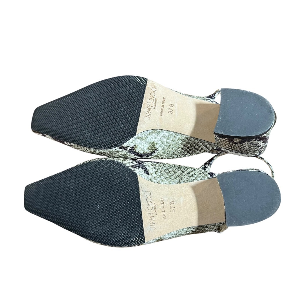 美品 JIMMY CHOO ジミーチュウ パイソン柄 スクエアトゥ スリングバック パンプス サイズ37 1/2 24.5cm相当 グリーン系