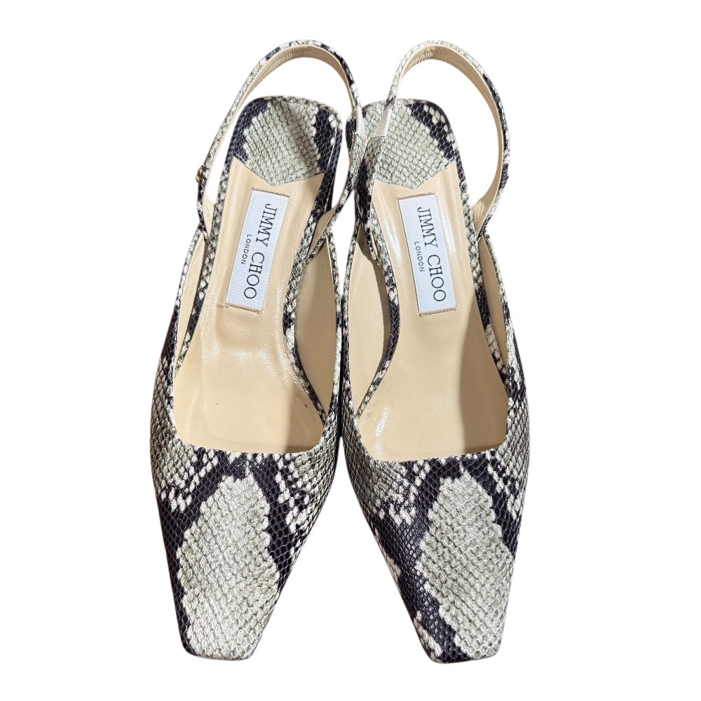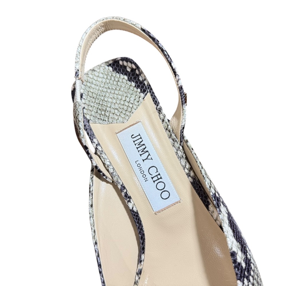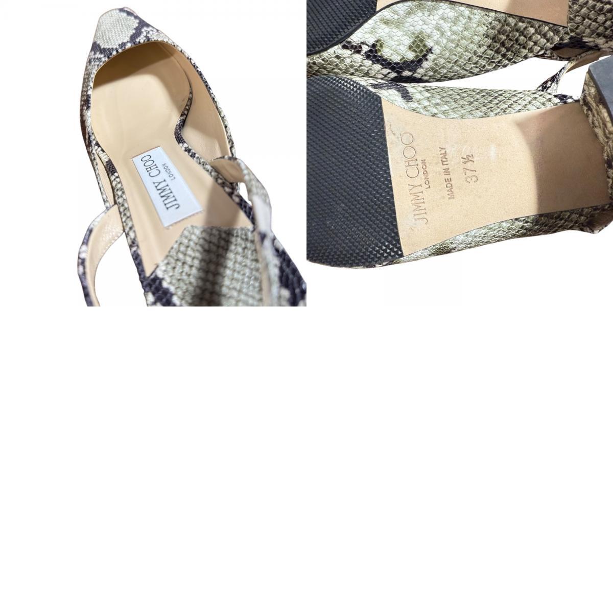 商品名:JIMMY CHOO ジミーチュウ パイソン柄 スクエアトゥ スリングバック パンプス サイズ37 1/2 24.5cm相当 グリーン系