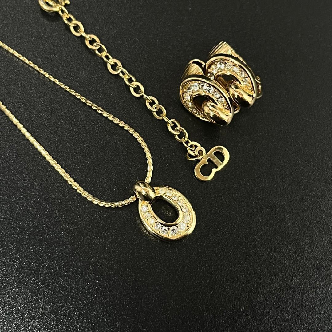 Dior クリスチャンディオール ネックレス・イヤリングセット サークル ラインストーン ゴールド