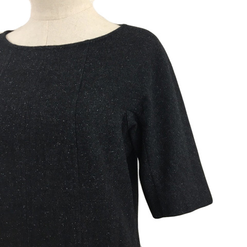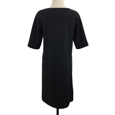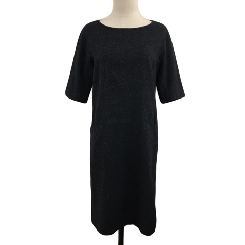 ニューヨーカー NEWYORKER ワンピース Iライン ひざ丈 無地 ウール 五分袖 11AR 黒 ブラック グレー レディース