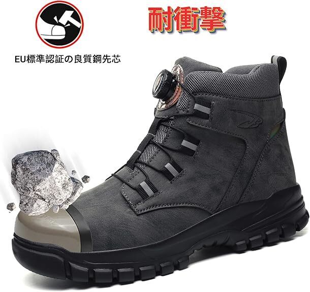 安全靴 作業靴 防水 メンズ ワークブーツ ハイカット ダイヤル 鋼先芯 セーフティシューズ 四季兼用 JHC0014 グレー 25.5cm