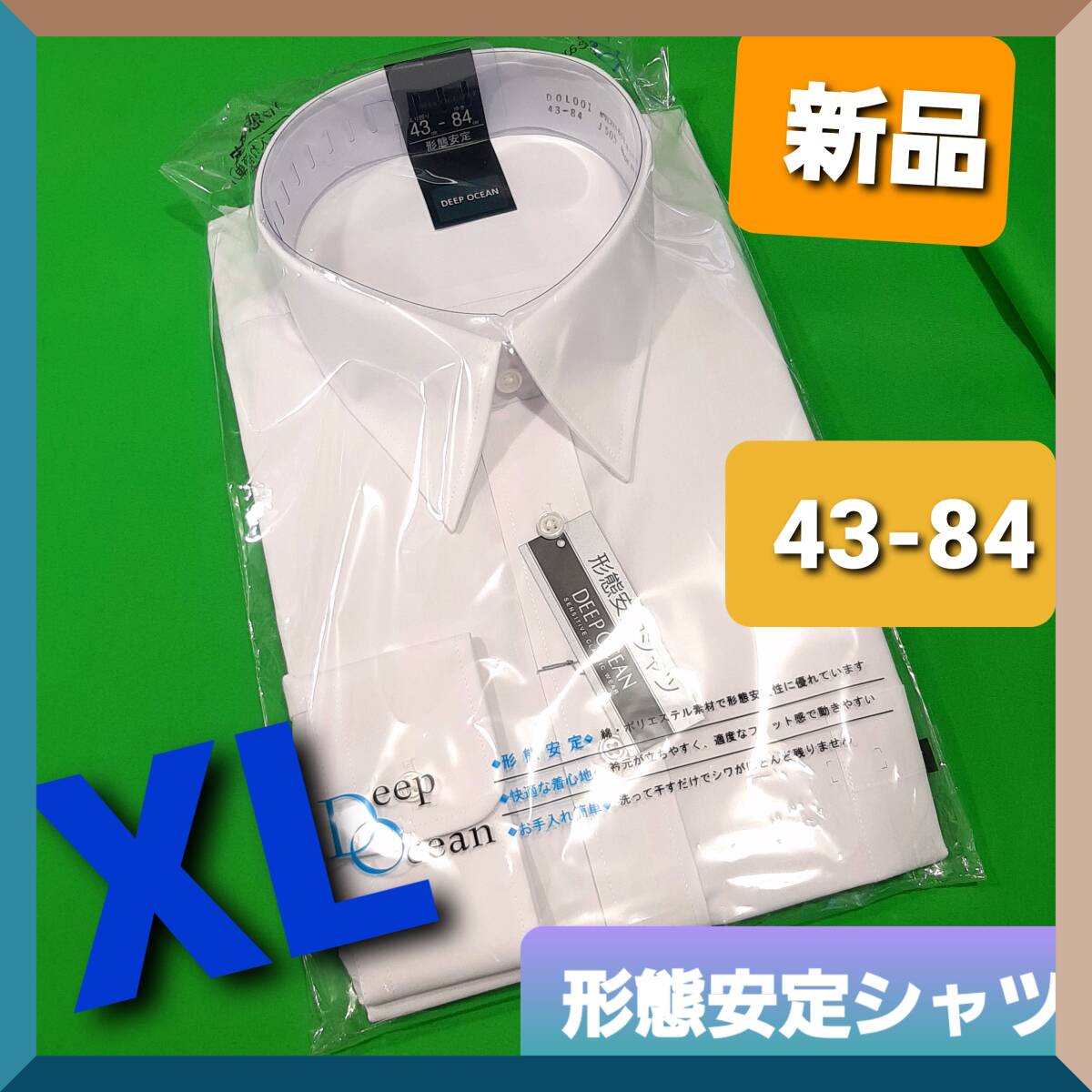 b4新品★43‐84 XLサイズ★形態安定 白無地 フォーマル カッターシャツ 長袖 Yシャツ ドレスシャツ 通勤 ホワイト 冠婚葬祭 大きいサイズ