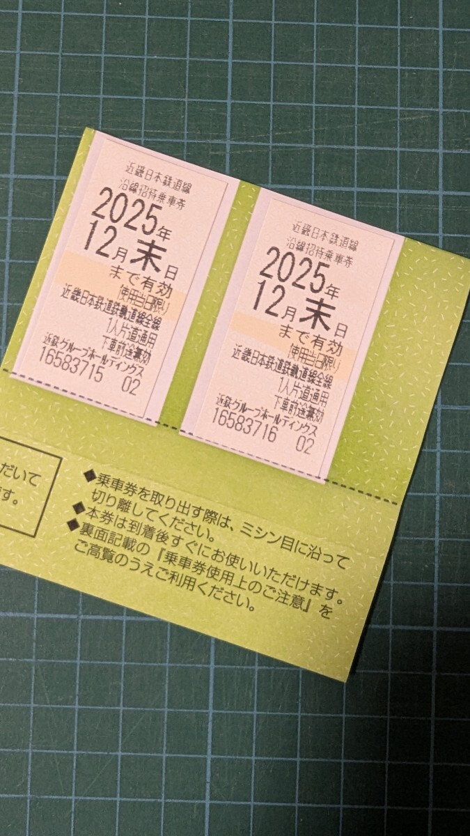 近畿日本鉄道 沿線招待乗車券(株主優待券) 2枚