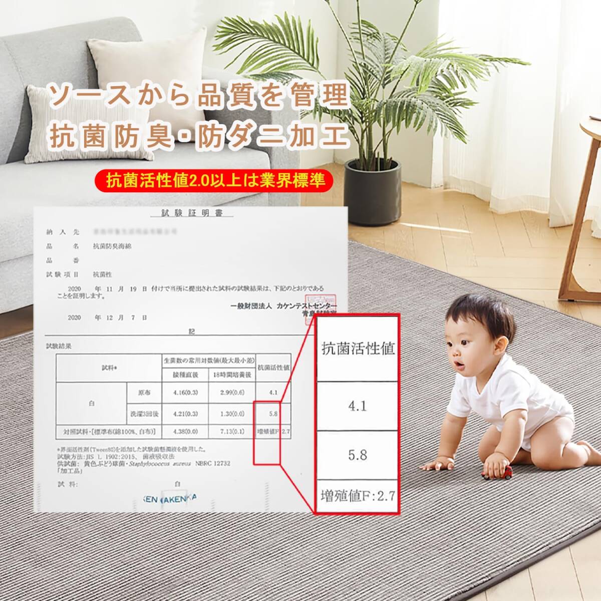 【防ダニ防臭】この厚手ラグは肌に直接触れるため、ラグの品質には細心の注意を払っています。ラグマット3 畳の生地は非常に通気性が良く、防臭・防ダニ加工が施されており、細菌の繁殖を防ぎます。そのため、アレルギーが心配な方も使いいただけます