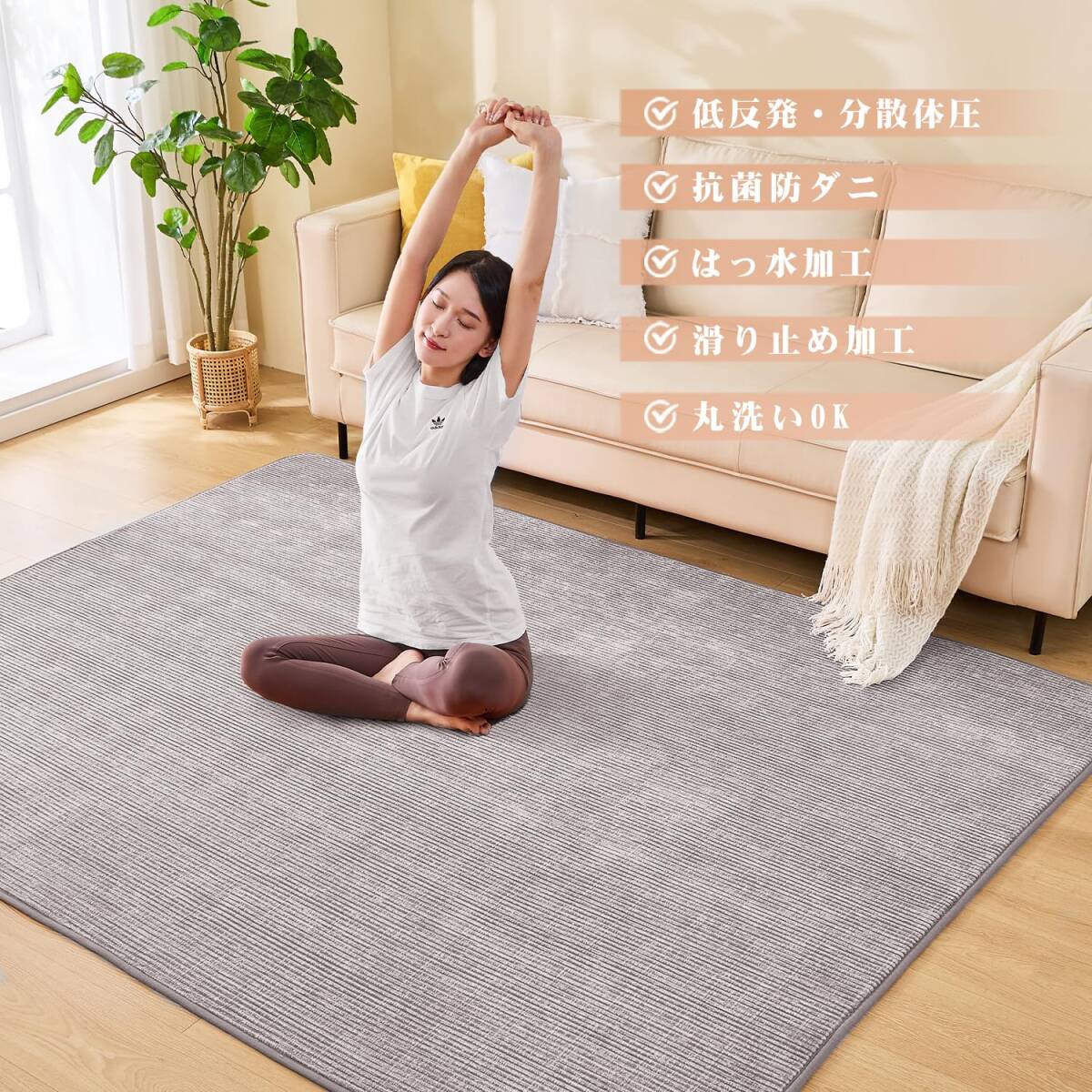 【低反発・分散体圧】低反発ラグマット3 畳は優れたクッション性を持ち、踏み心地が非常に柔らかく、まるで雲の上を歩いているような感覚をお楽しみいただけます。ラグマットの魅力は、横になってリラックスする際の心地良さにあります