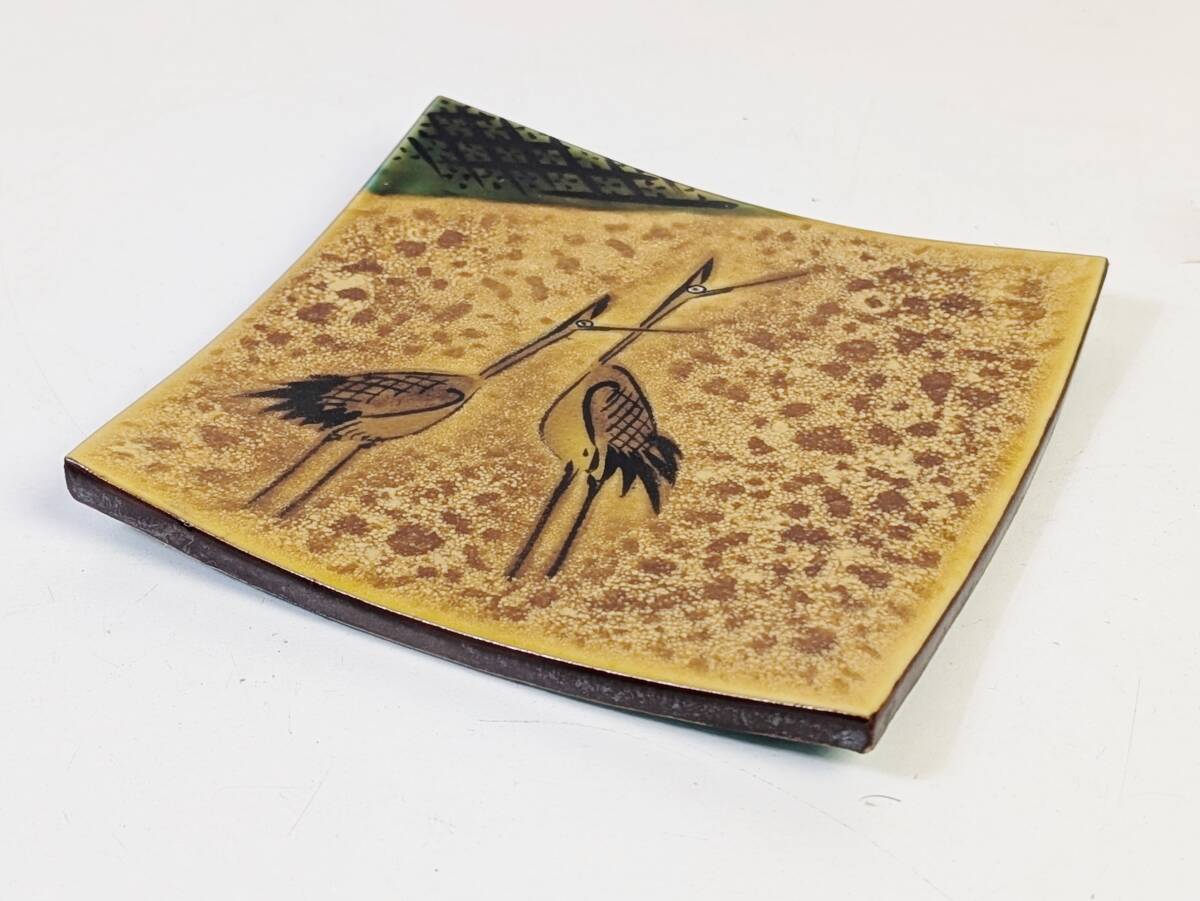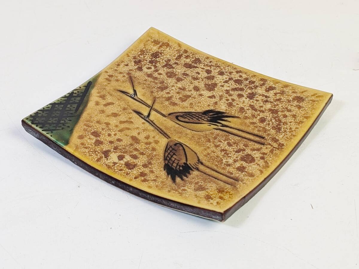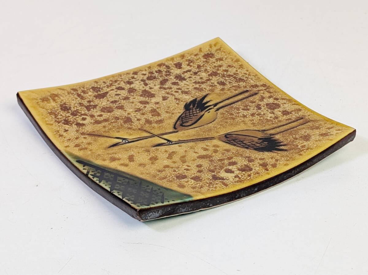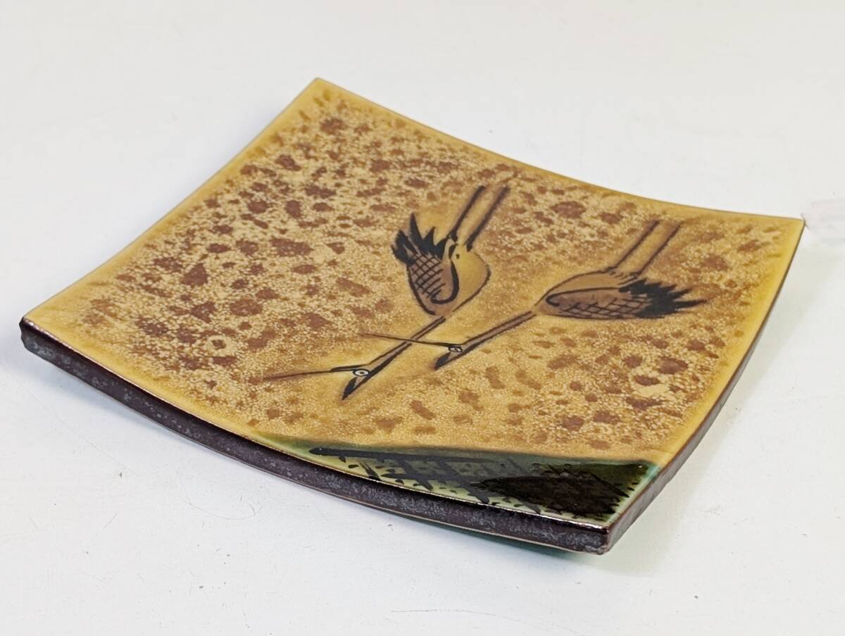 九谷焼 浅蔵五十吉 瑞鳥飾皿 絵付皿 銘々皿 15cm 共箱付 角皿 平皿 釉彩 陶磁器 伝統工芸品