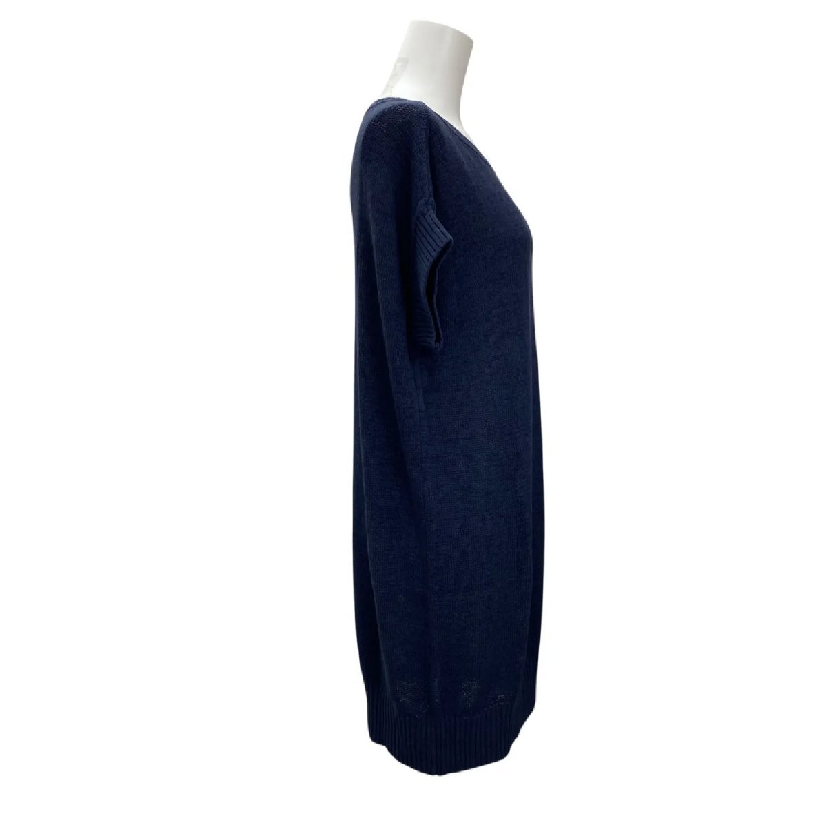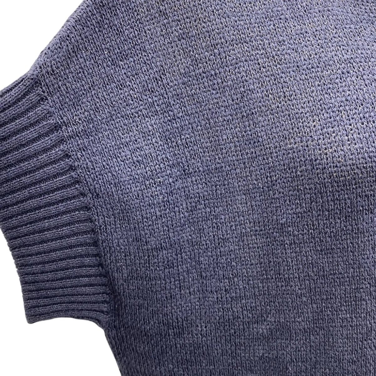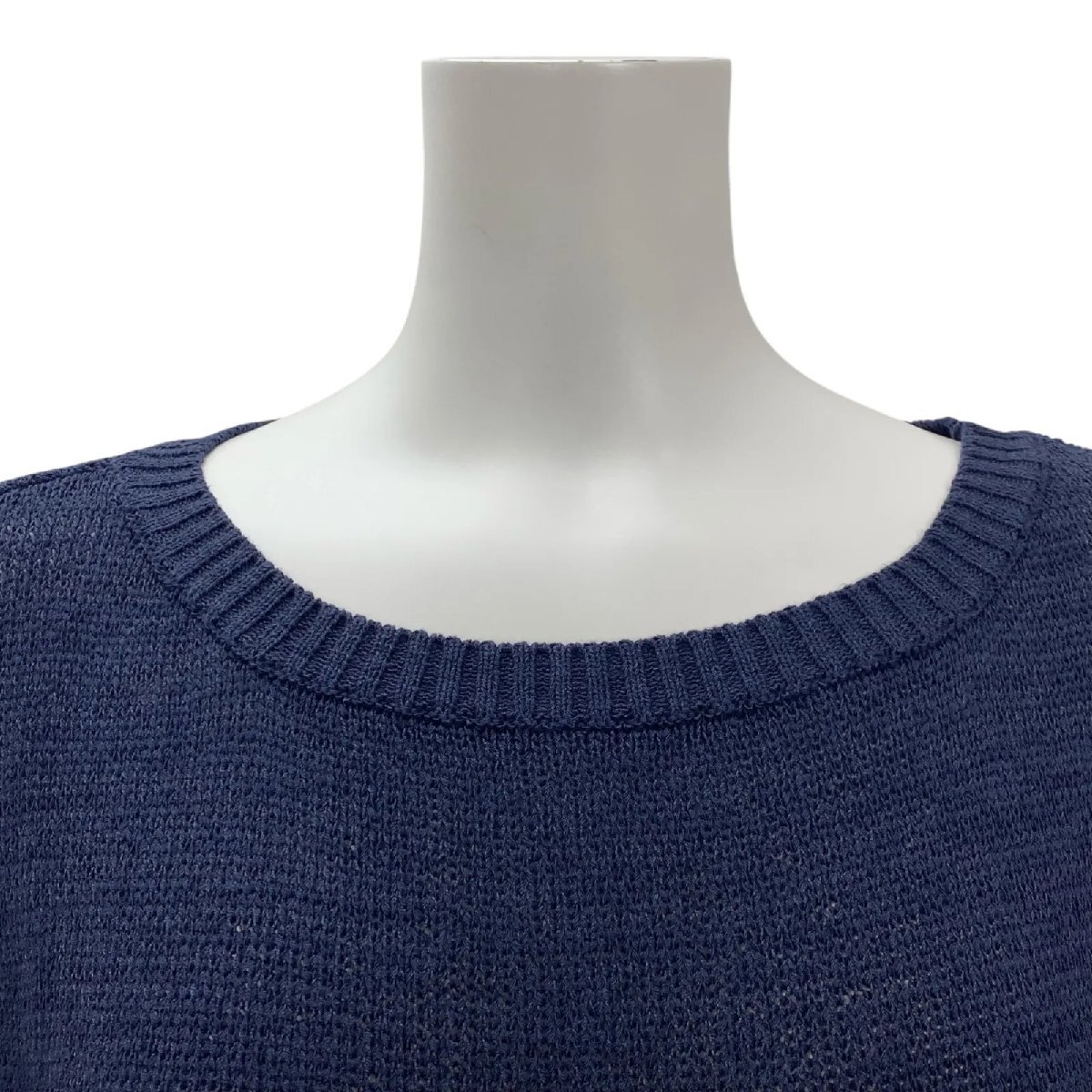 イエナ IENA ニットワンピース 膝丈 半袖 ネイビー リネン コットン サイズF レディース S5T193