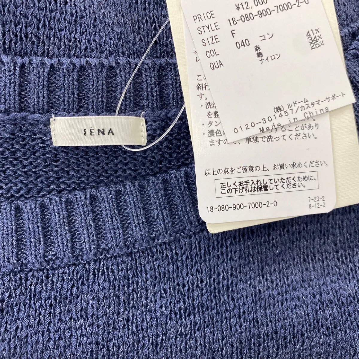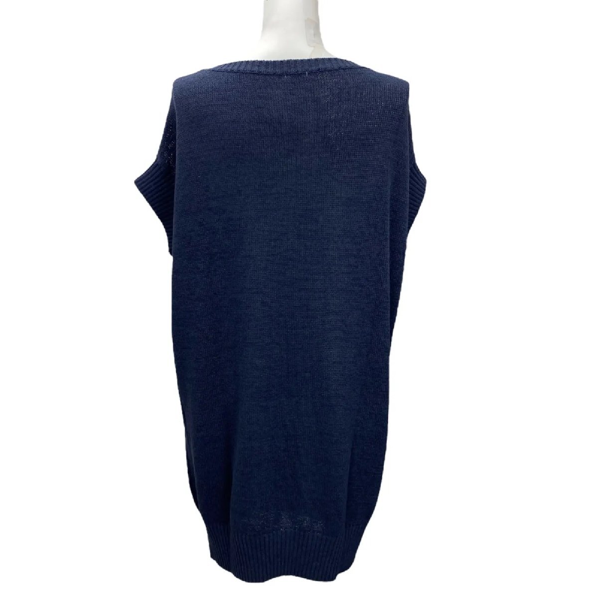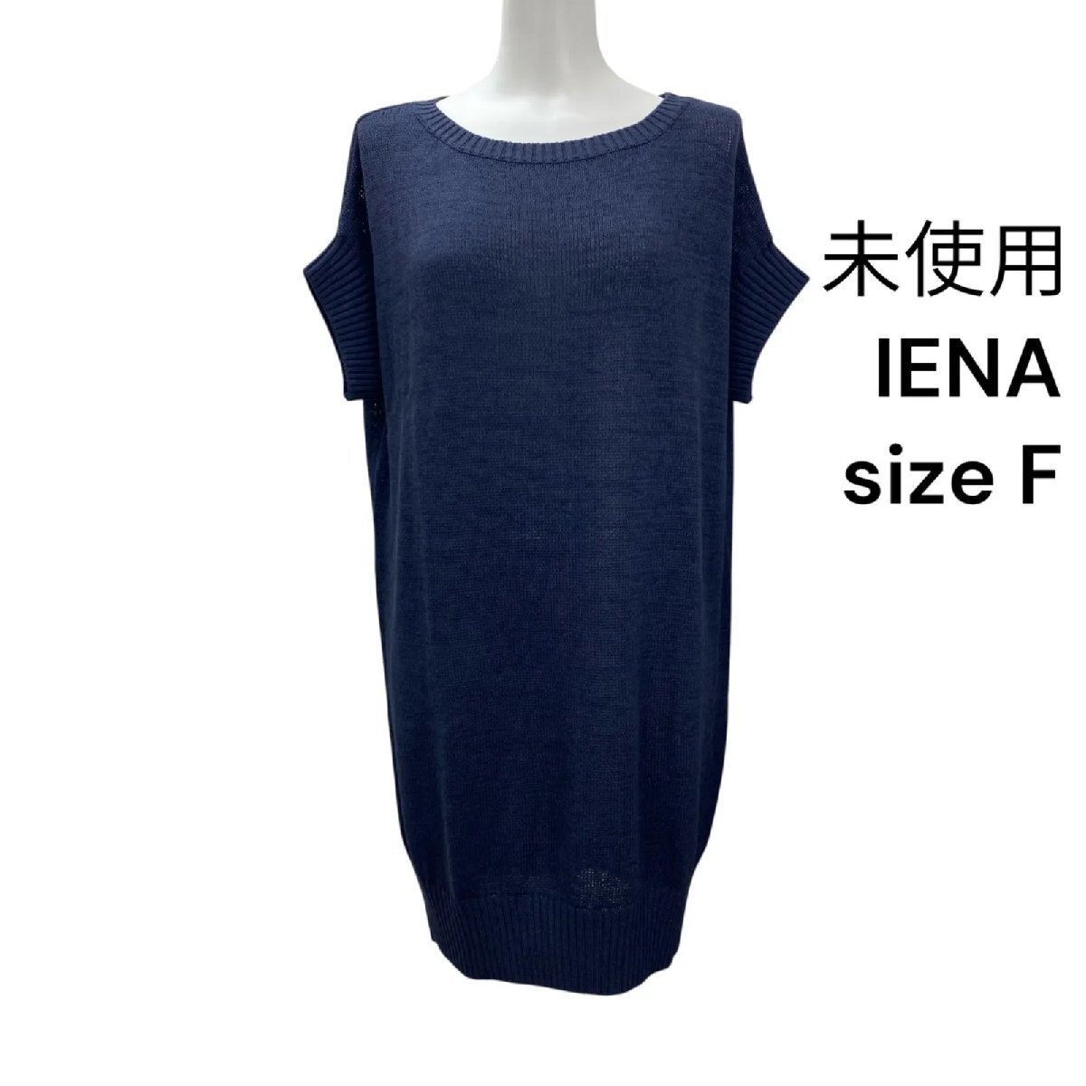 イエナ IENA ニットワンピース 膝丈 半袖 ネイビー リネン コットン サイズF レディース S5T193