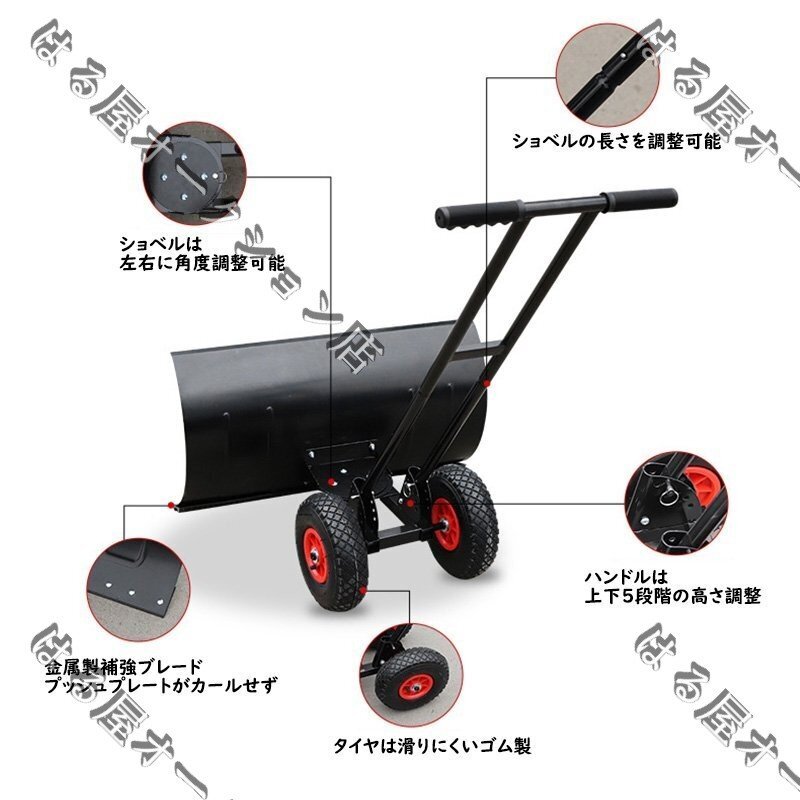 雪かき 雪かき機 除雪 スコップ タイヤ付き 冬 手押し式 高さ調整 左右角度調整 除雪用具 シャベル 家庭用 除雪と除氷 除雪作業 (黒・74cm)