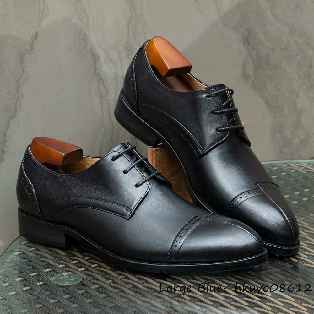 最高級★定価9万超 ビジネスシューズ メンズ 本革 レザーシューズ 職人手作り 彫り 紳士靴 高級牛革 超希少 革靴 結婚式 ブラック 27.5cm