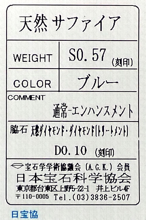 ダイヤモンド色:ほぼ無色に近い色合い、トリートブルー
