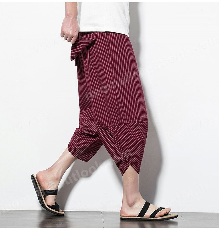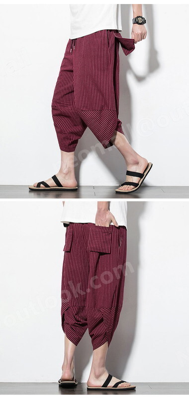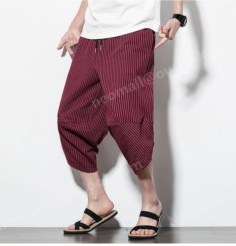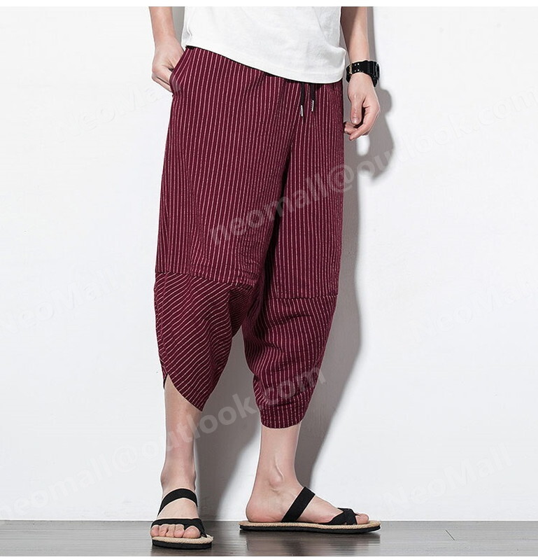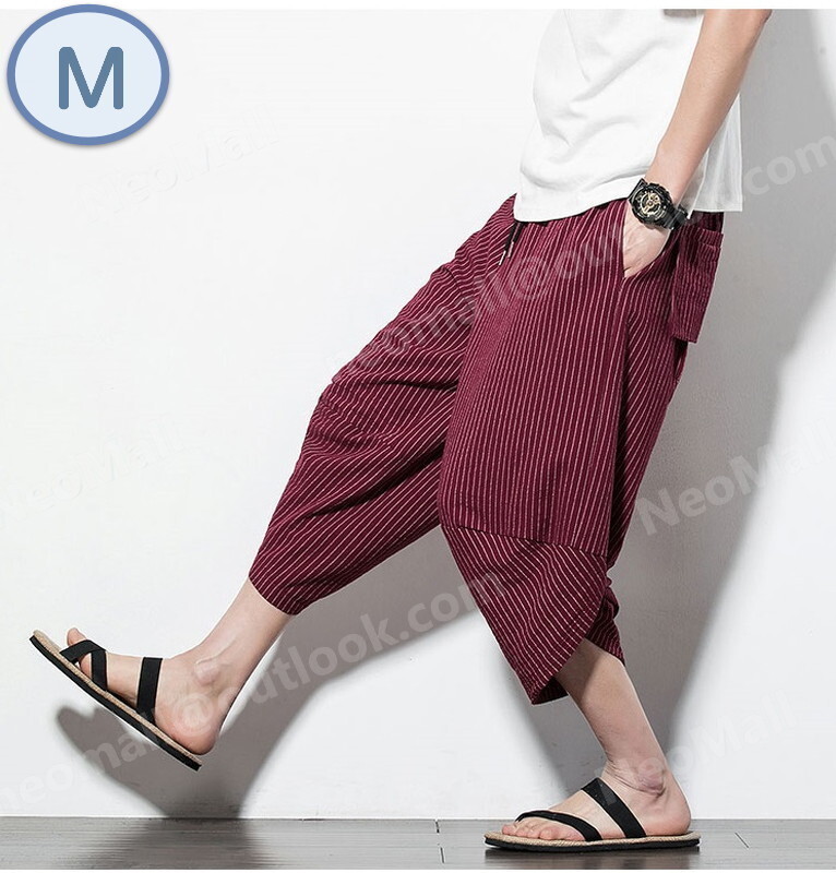 お買い得☆メンズ サルエルパンツ レッド M カジュアル ヒップホップ 7分丈 スウェット 無地 ポケット付 オールシーズン【063】
