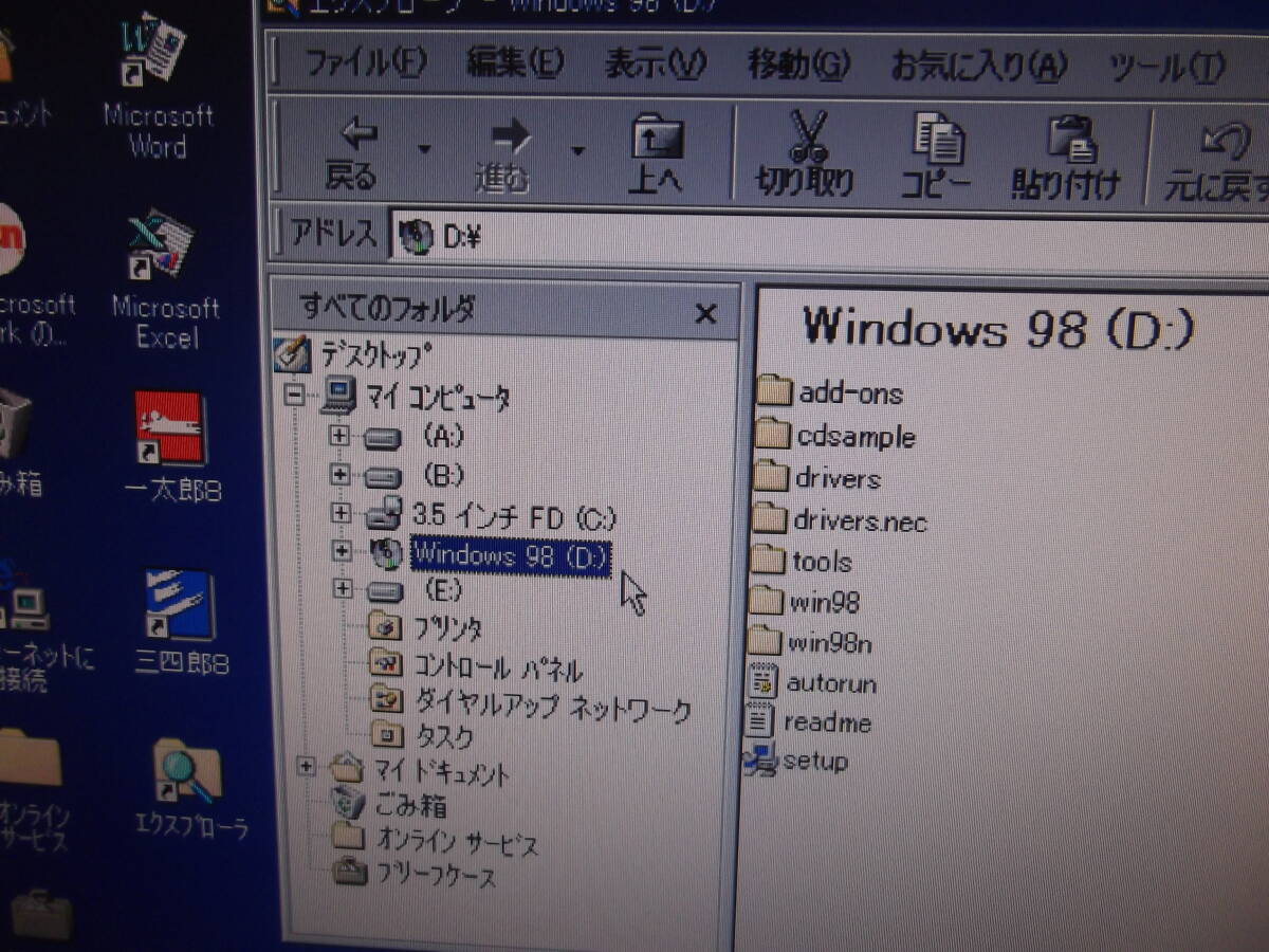 ・Windows 98(Aドライブから起動)   1.6GB(1600MB)  再インストール済