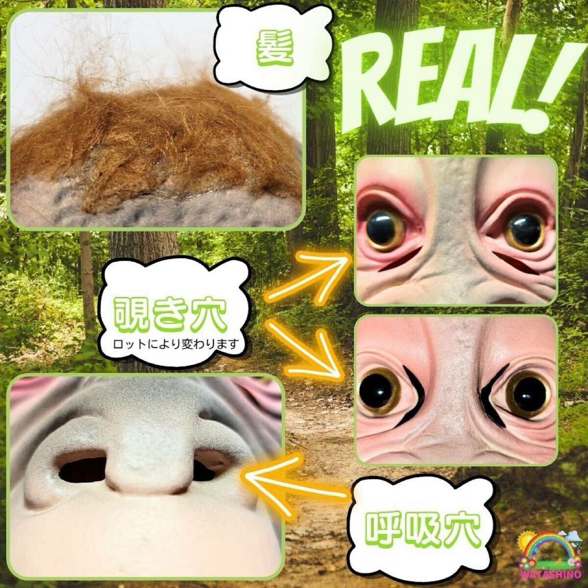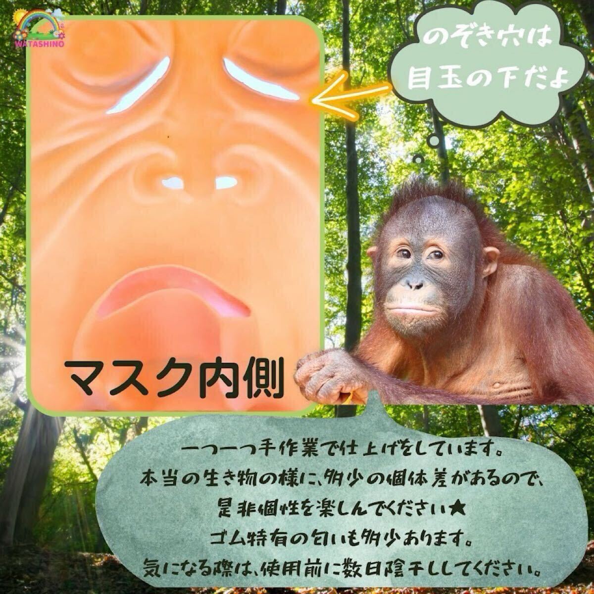 | アニマル かぶりもの 動物 お面 おもしろ マスク ハロウィン 被り物オランウータンの顔の特徴を忠実に再現した、とぼけた表情と目が超リアルな面白いアニマルマスクです。 目鼻口3か所に穴があるため通気性も良く、長時間使用しても息苦しくありません。 軽くて柔らかい感触で、着け心地も良いラテックス製。 フリーサイズで後ろの切り込みも深くかぶりやすい為、笑えるおもしろグッズとして男女問わず着用可能です。 ハロウィンの仮装や各種パーティー、イベント、お祭り、文化祭、学園祭のかぶりものとして。 盛り上げたい飲み会でのウケ狙い一発芸・お笑いグッズ用の被り物として。 かぶるだけなので準備も簡単。お友達とお揃いや、色々な動物を集めて動物園状態にしたり。 ユニークなデザインとリアルな造形が特徴で、思わず笑ってしまう空気を作り出せます。 一気に注目を集めて、一躍人気者に。サイズ:フリー 約28cm×32cm、材質:ラテックス、重量:約270g+-40g、製造国:中国、パッケージ:袋入り。 着色など手作業による多少の個体差ございますがご了承くださいませ。 |