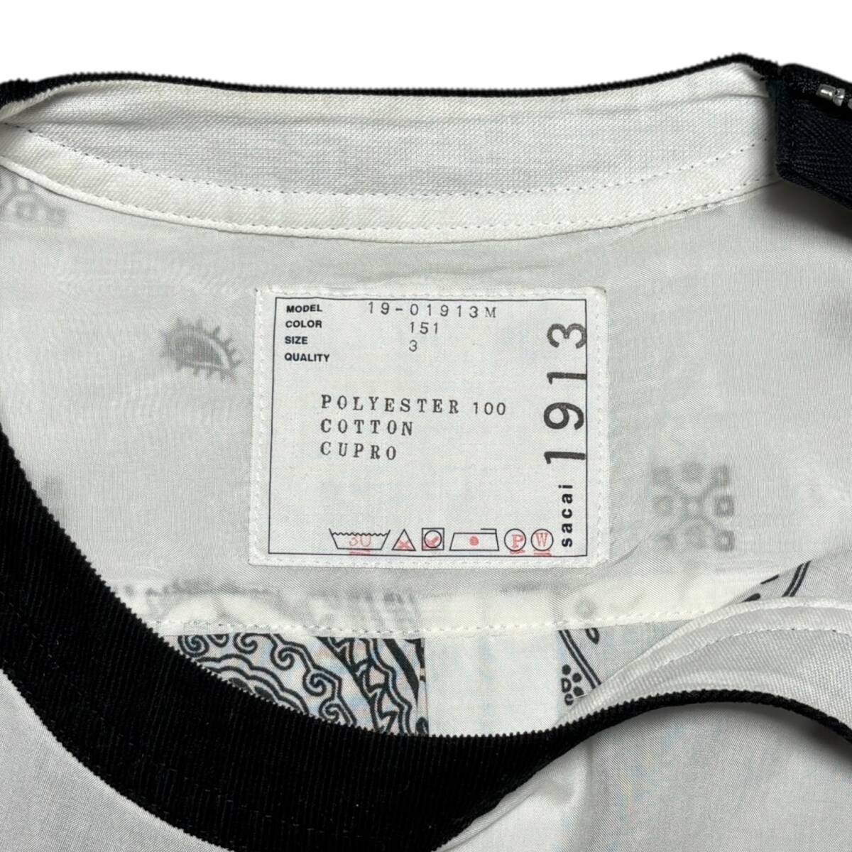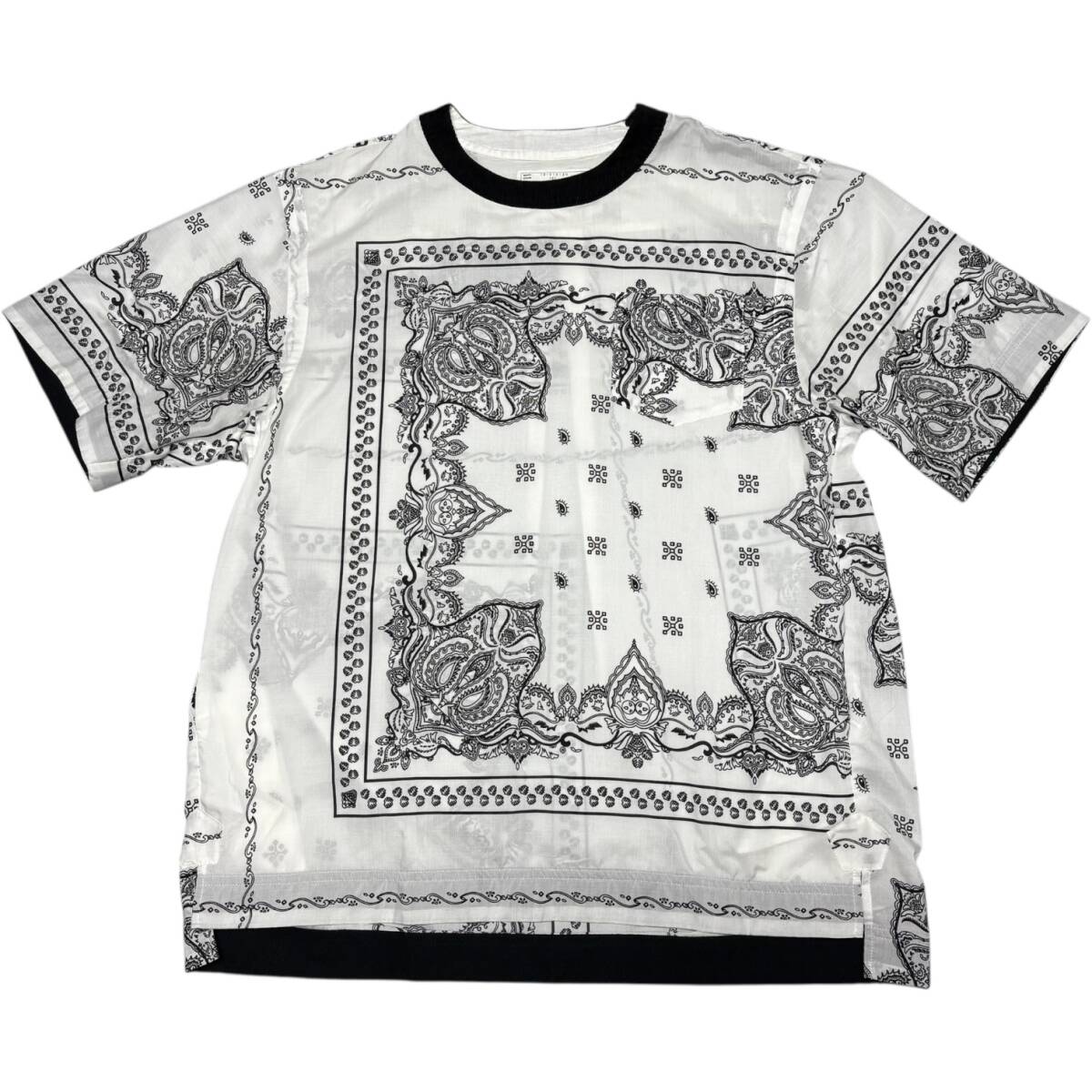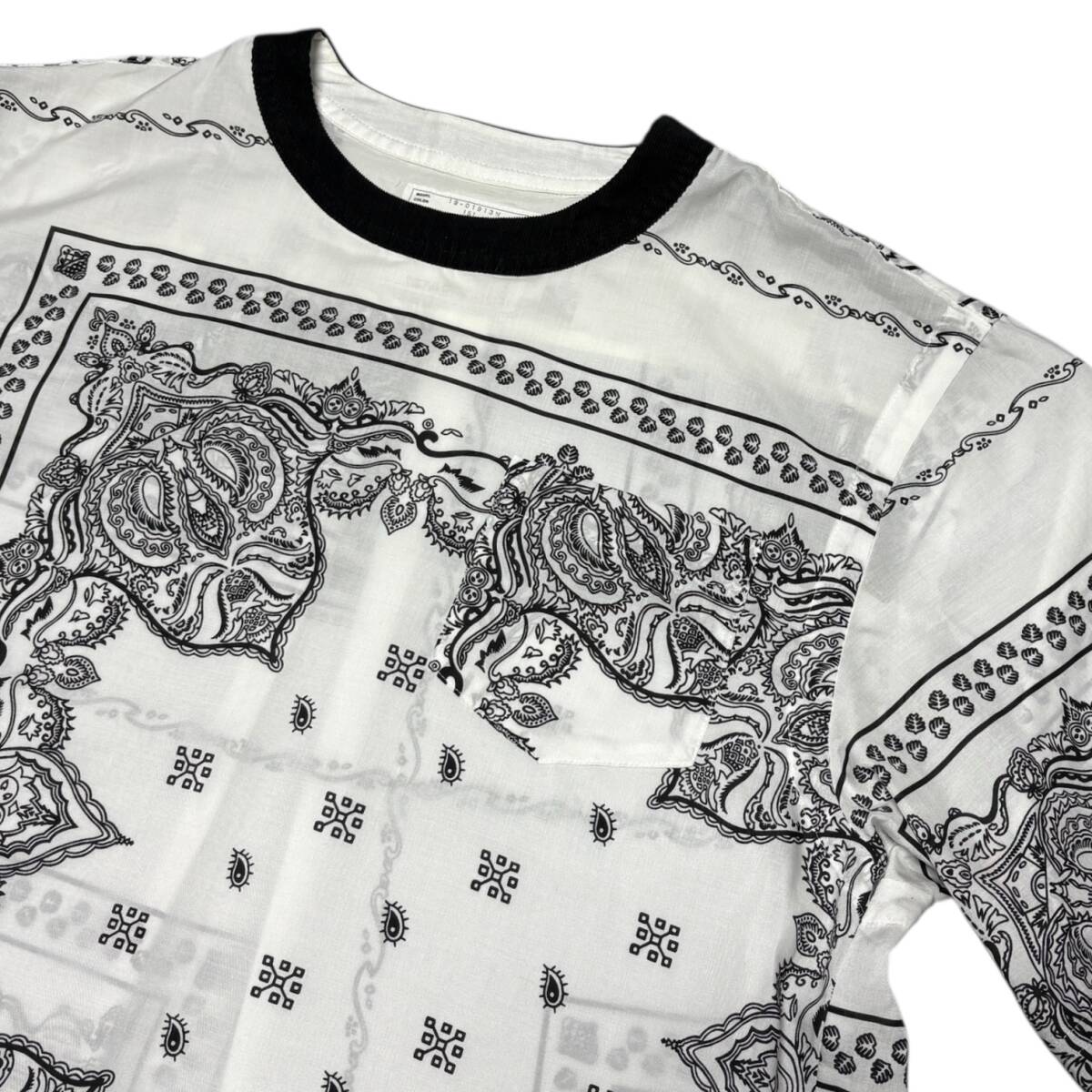 美品 19ss SACAI バンダナ柄 POシャツ ホワイト size:3 / ニットパンツパーカースウェットブルゾンジャケットコート