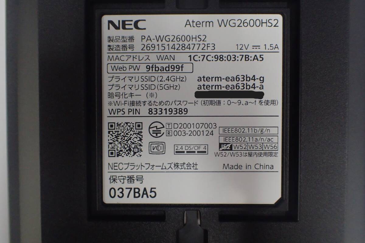 NEC Aterm PA-WG2600HS2 無線LAN Wi-Fi ルーター 完品 親機 中継機 子機 未使用 箱無し 激安1円スタート