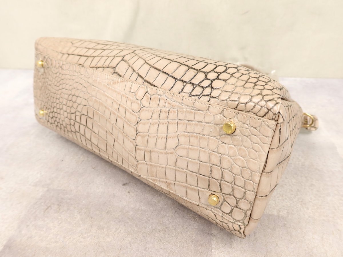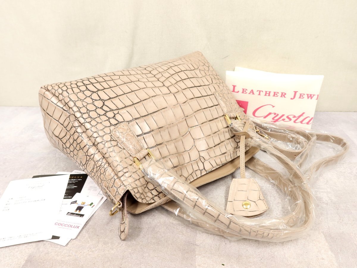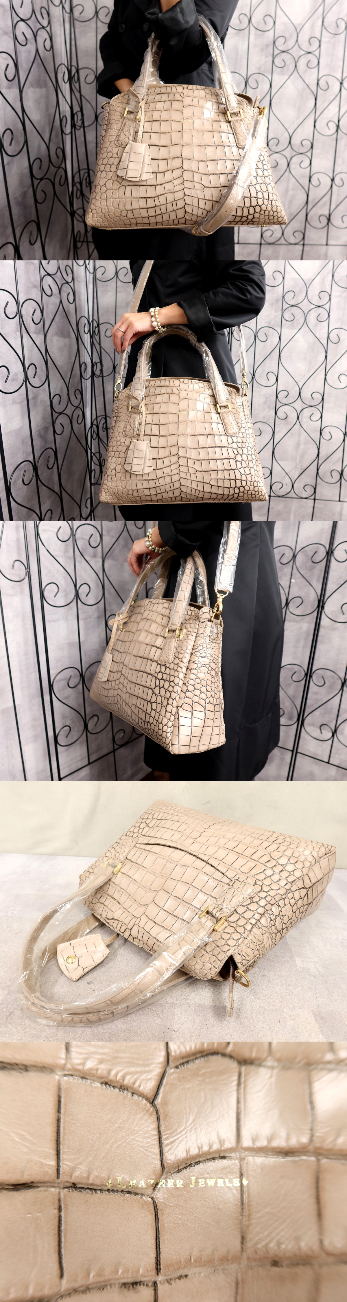 未使用 保管品●LEATHER JEWELS レザージュエルズ●マット クロコダイル 本 ワニ 革●2way ハンド バッグ●ベージュ系●G金具●B5●Js62571