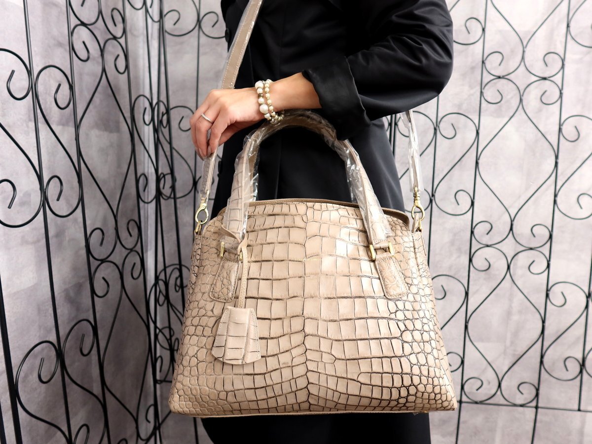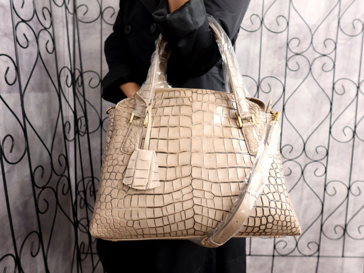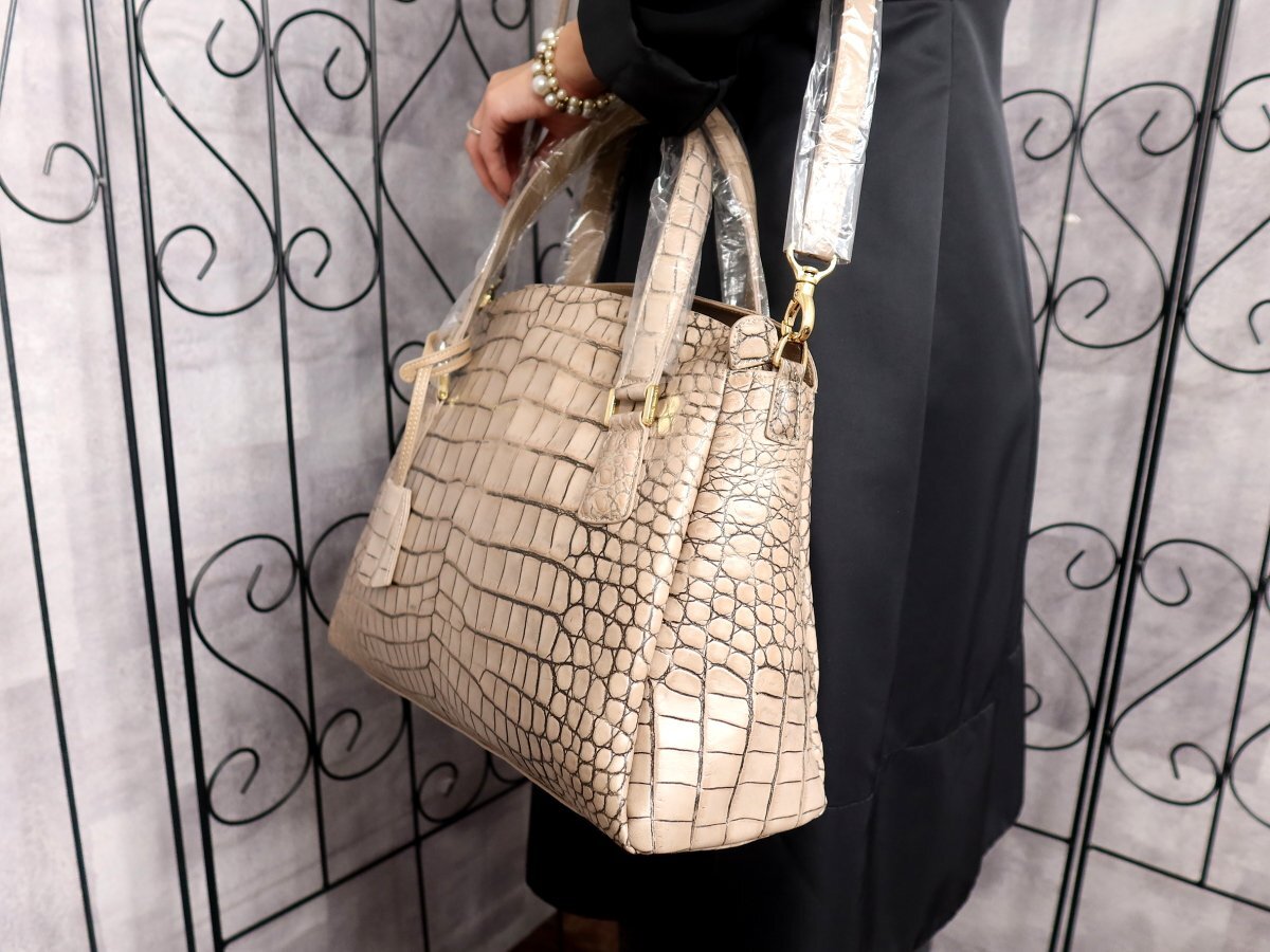 未使用 保管品●LEATHER JEWELS レザージュエルズ●マット クロコダイル 本 ワニ 革●2way ハンド バッグ●ベージュ系●G金具●B5●Js62571