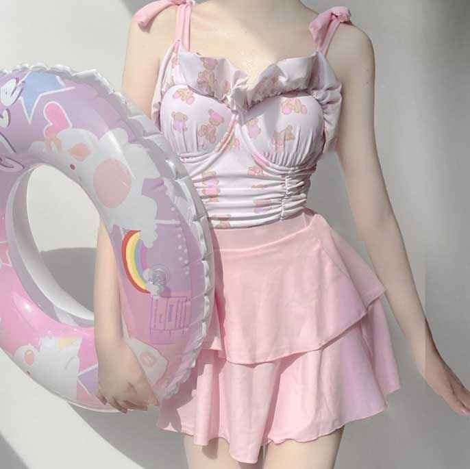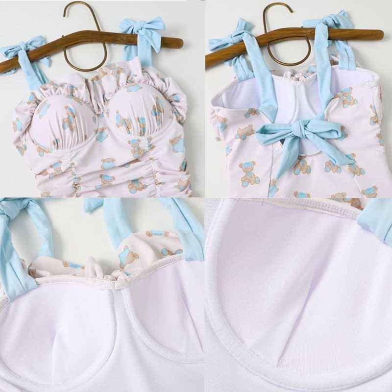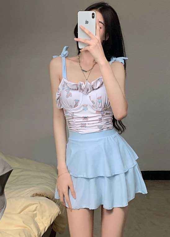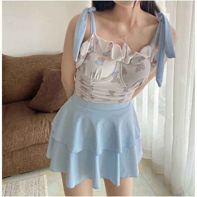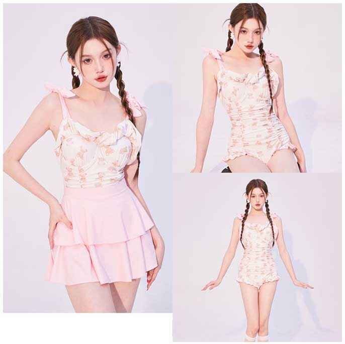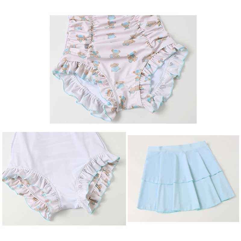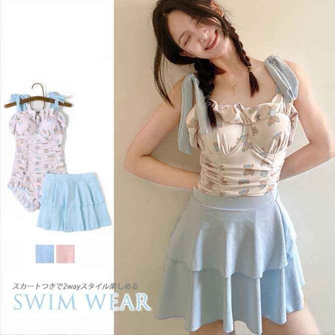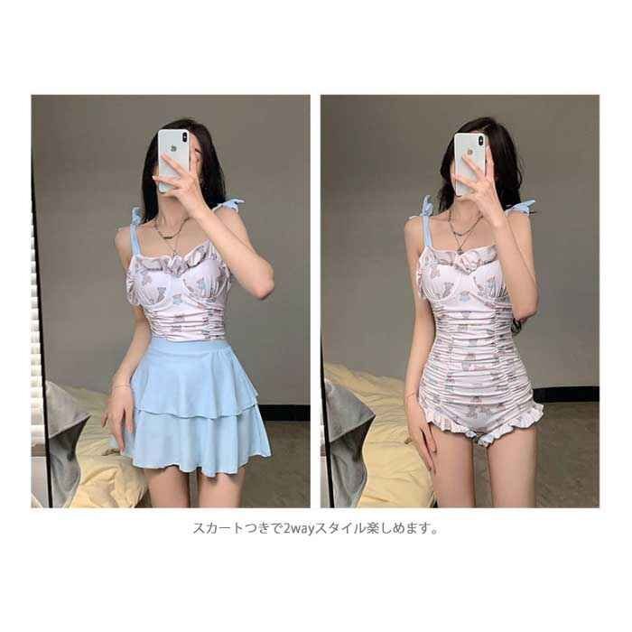 ・優しく癒しのあるパステルカラーのピンクとブルーの2カラー。フリルがアクセント。露出控えめで抵抗なく着て頂けます。