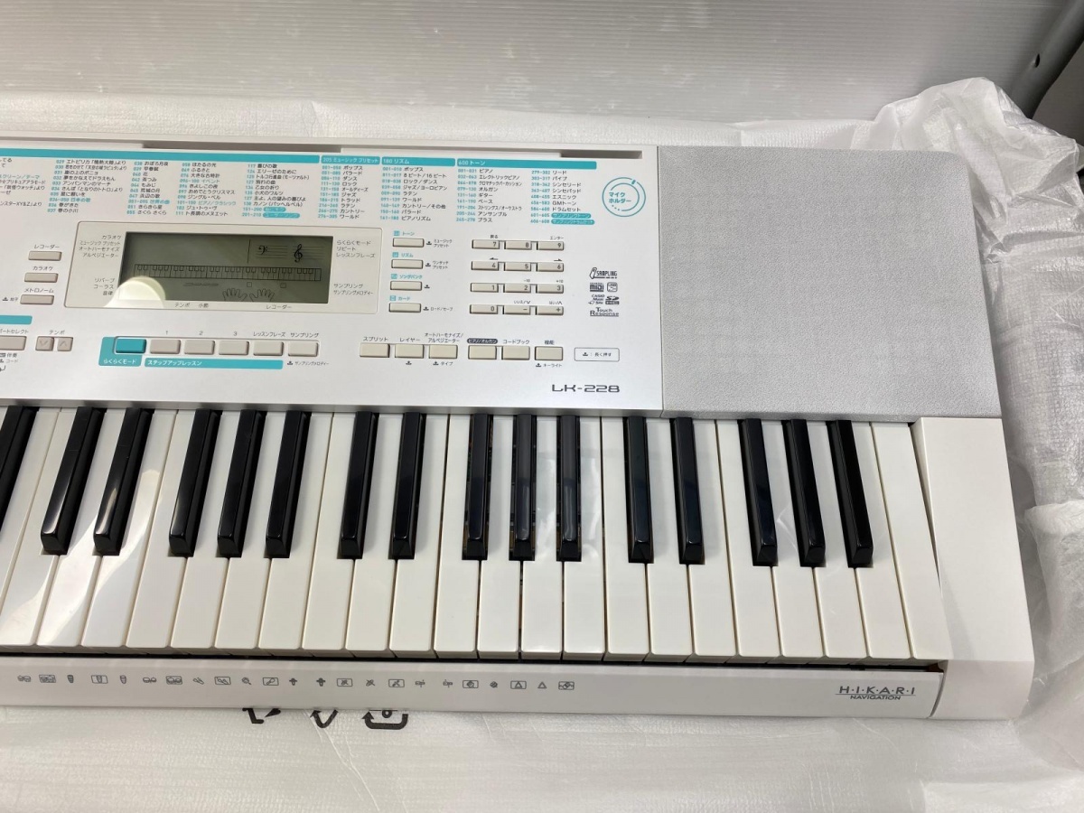 【中古美品】CASIO LK-228 光ナビゲーションキーボード 61鍵 ホワイト マイク ヘッドホン付き 動作確認済み ○YR-19545○ の出品です。