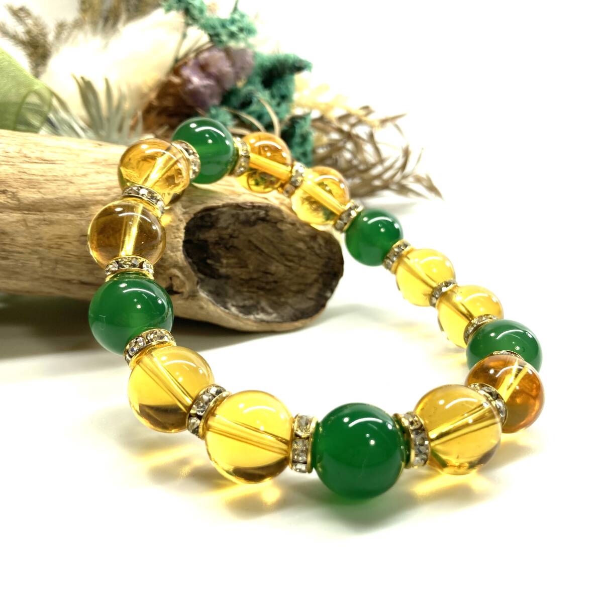 緑瑪瑙&シトリン パワーストーン ブレスレット 天然石 (ゴールド) 12mm 金運 仕事運 メンズ・レディース 開運 浄化 数珠ブレス
