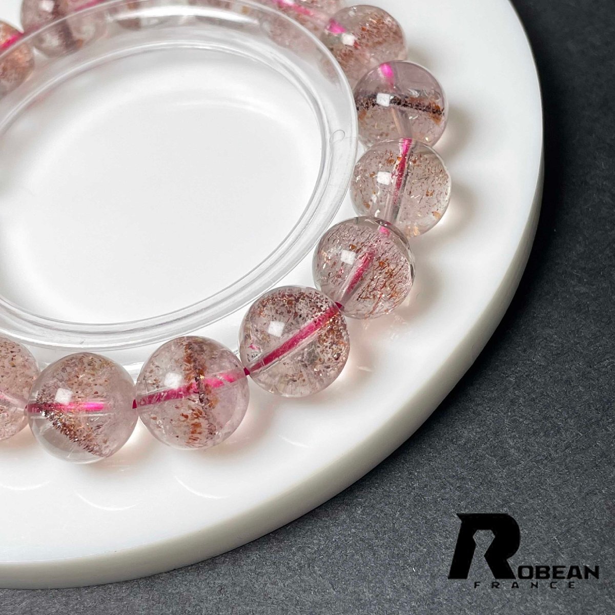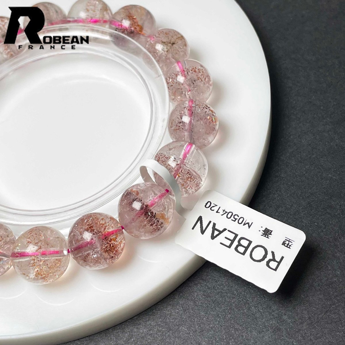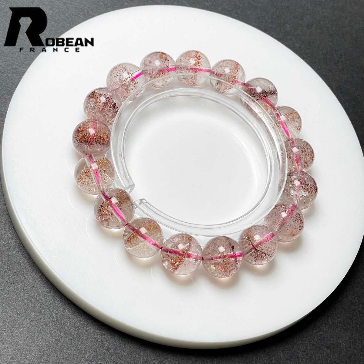 絶賛 EU製 定価37万円★ROBEAN・ストロベリークォーツ★ブレスレット パワーストーン 天然石 苺水晶 高級 可愛い 11.7-12.4mm M0504120