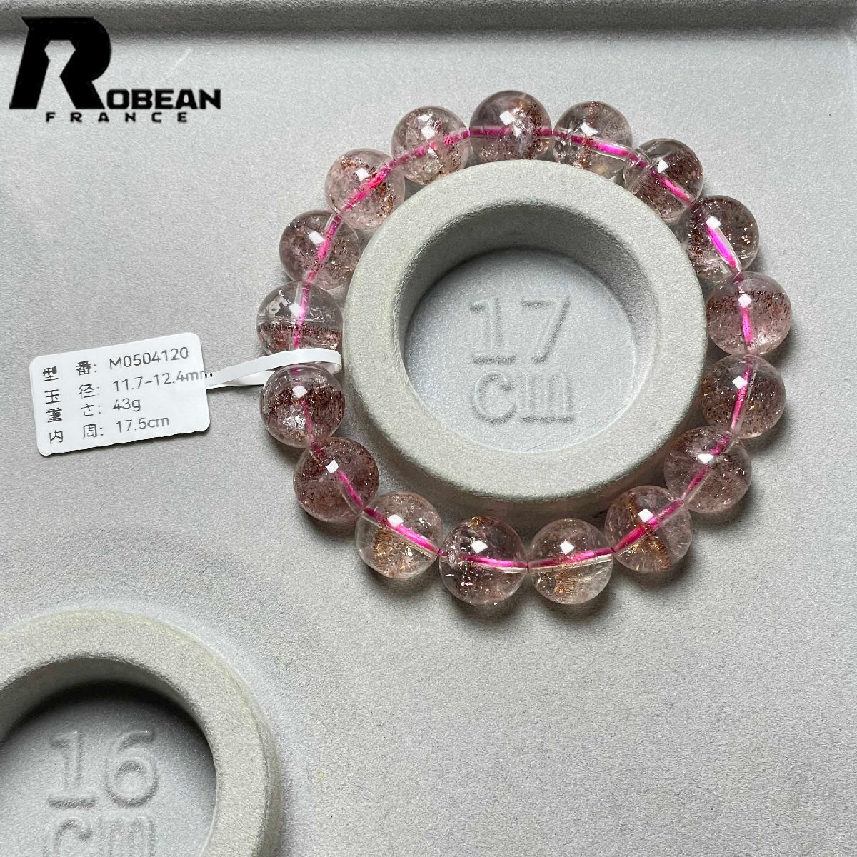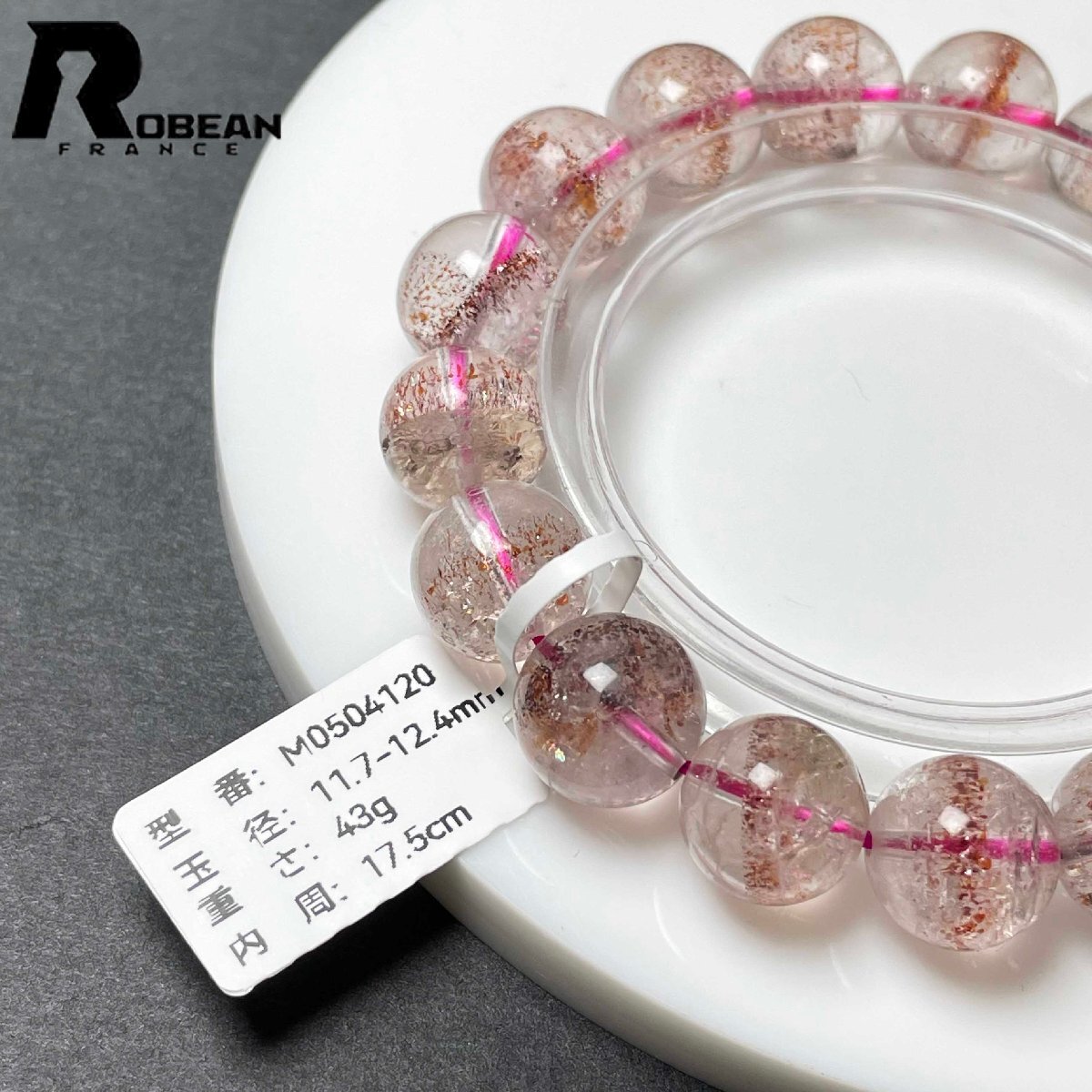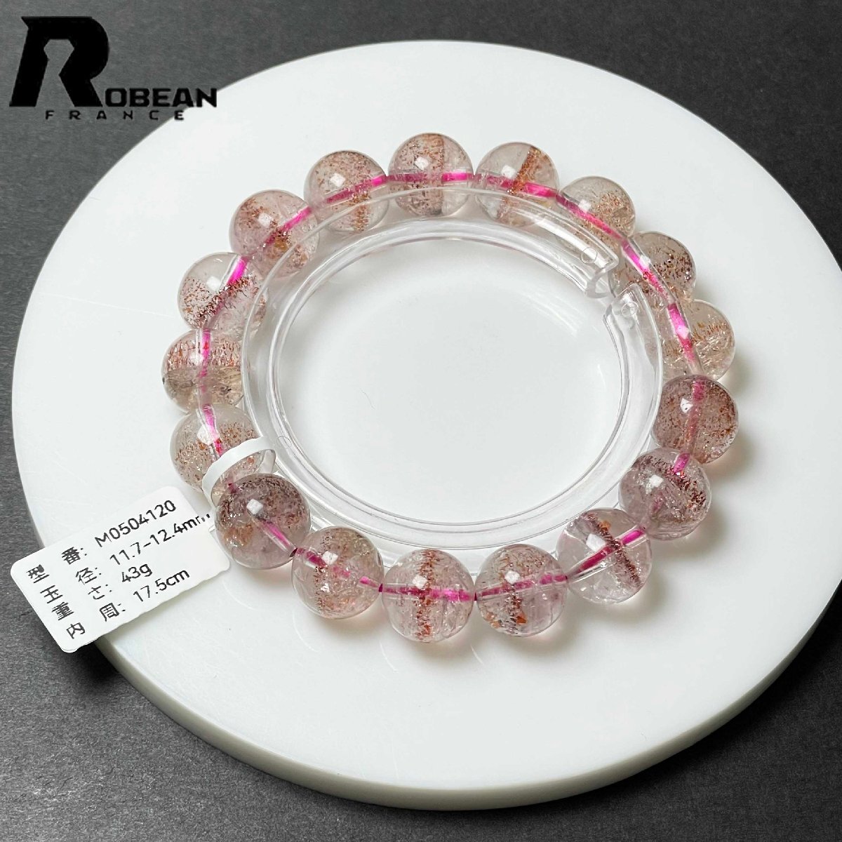 絶賛 EU製 定価37万円★ROBEAN・ストロベリークォーツ★ブレスレット パワーストーン 天然石 苺水晶 高級 可愛い 11.7-12.4mm M0504120