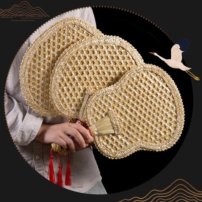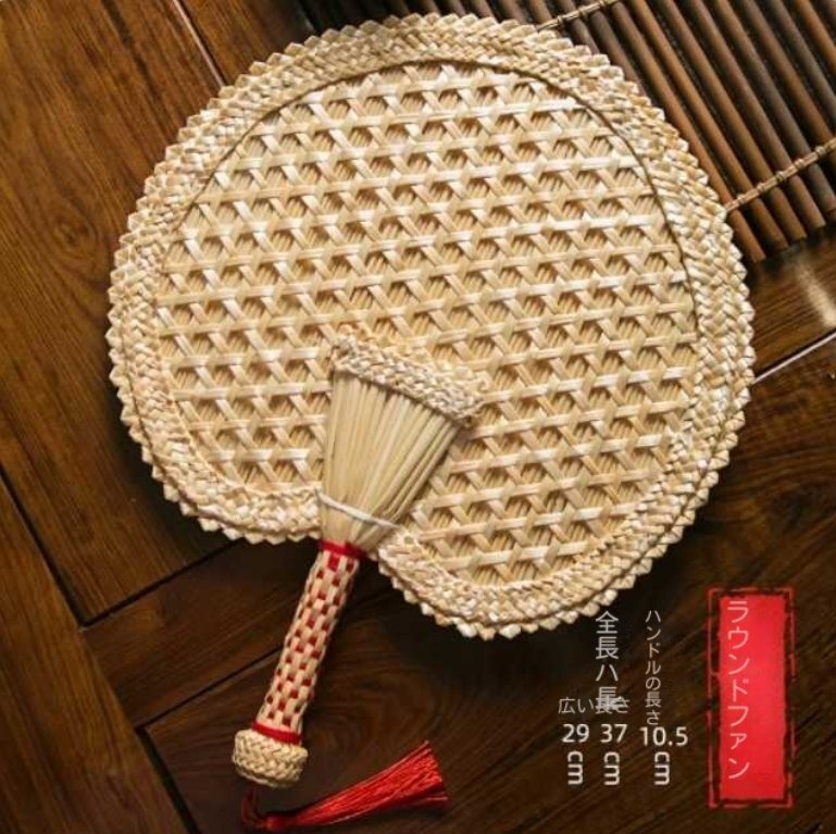 手編みうちわ夏の昔ながらの手回し麦わらうちわ夏携帯涼芭蕉うちわ大うちわ竹
