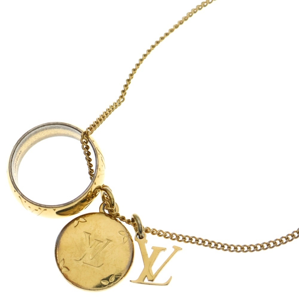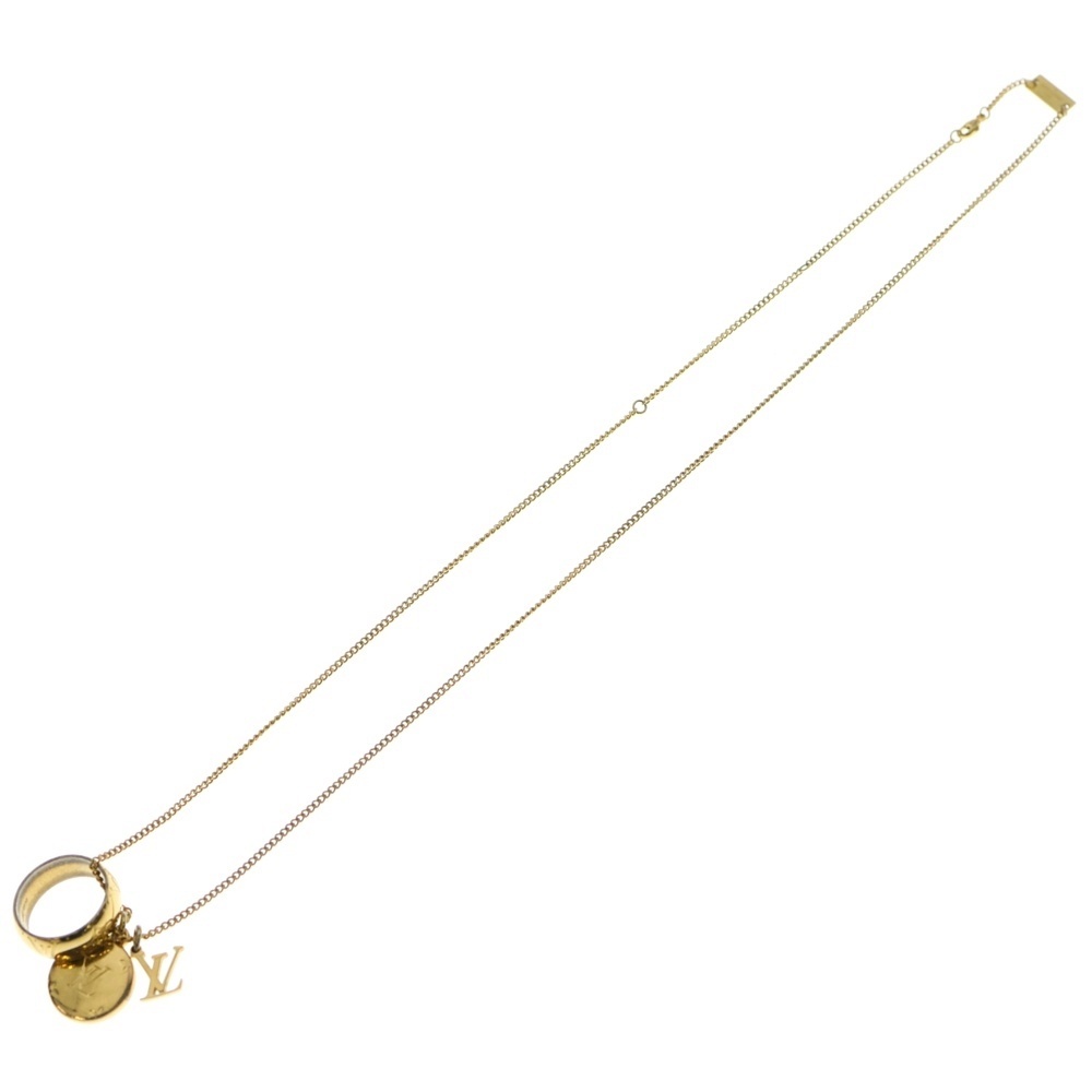LOUIS VUITTON ルイヴィトン LV ロゴ リング モノグラム チャーム メダル チェーン ネックレス ゴールド M80189