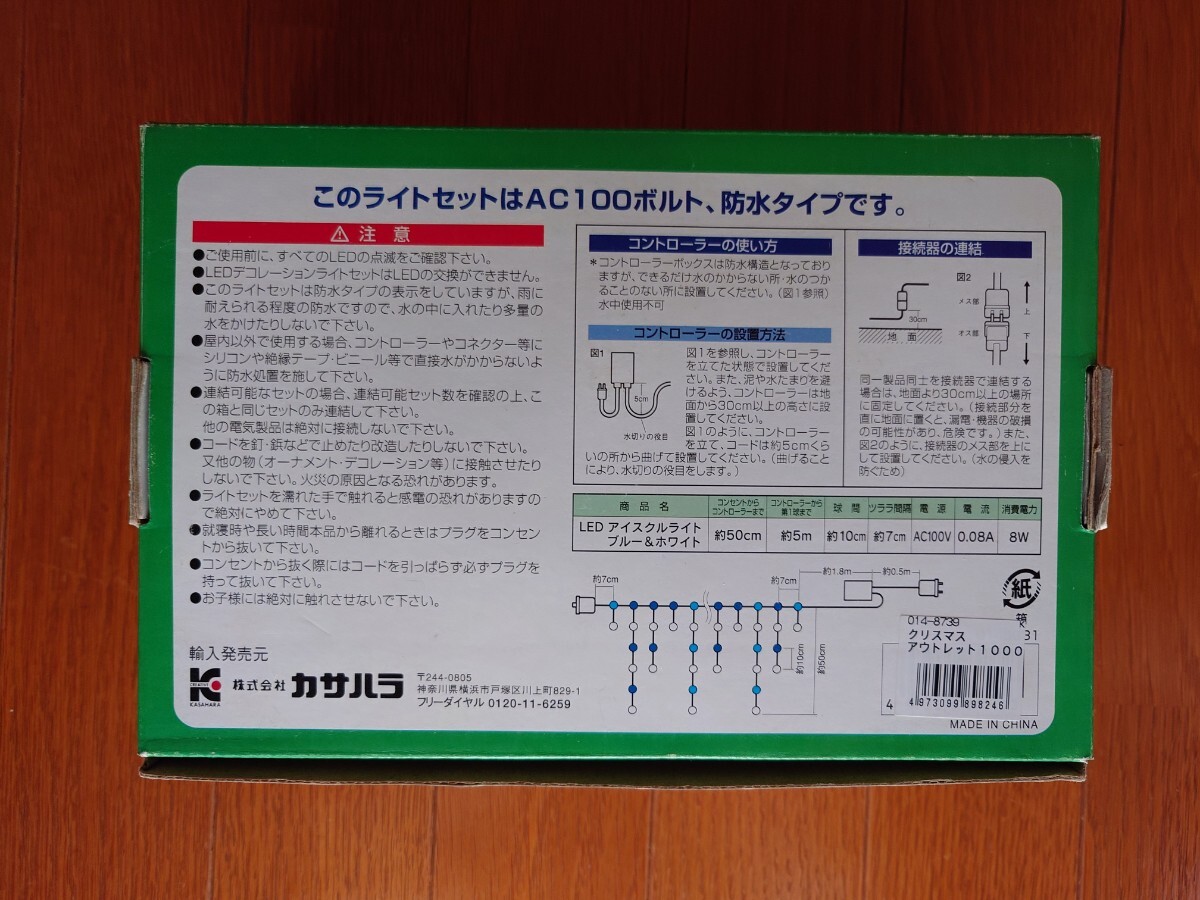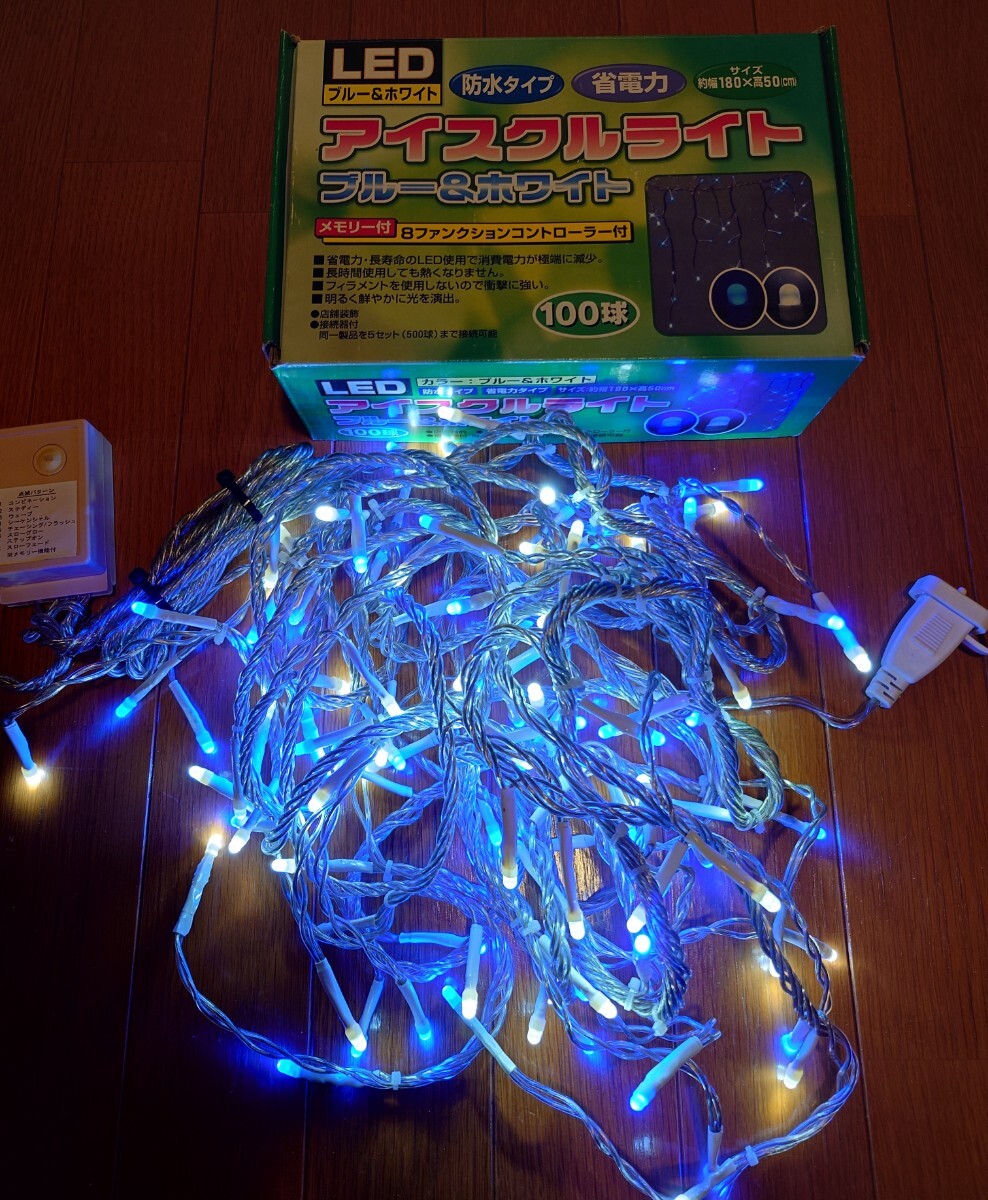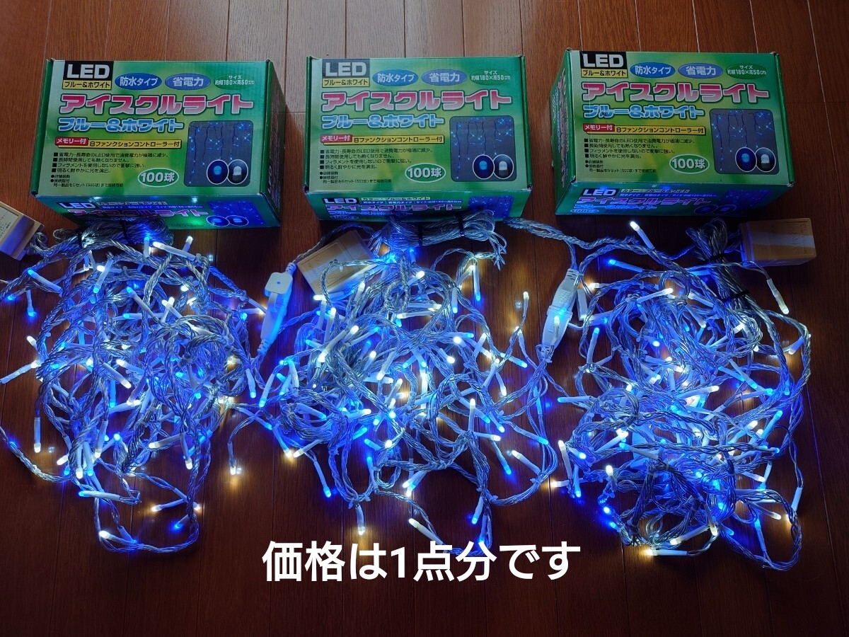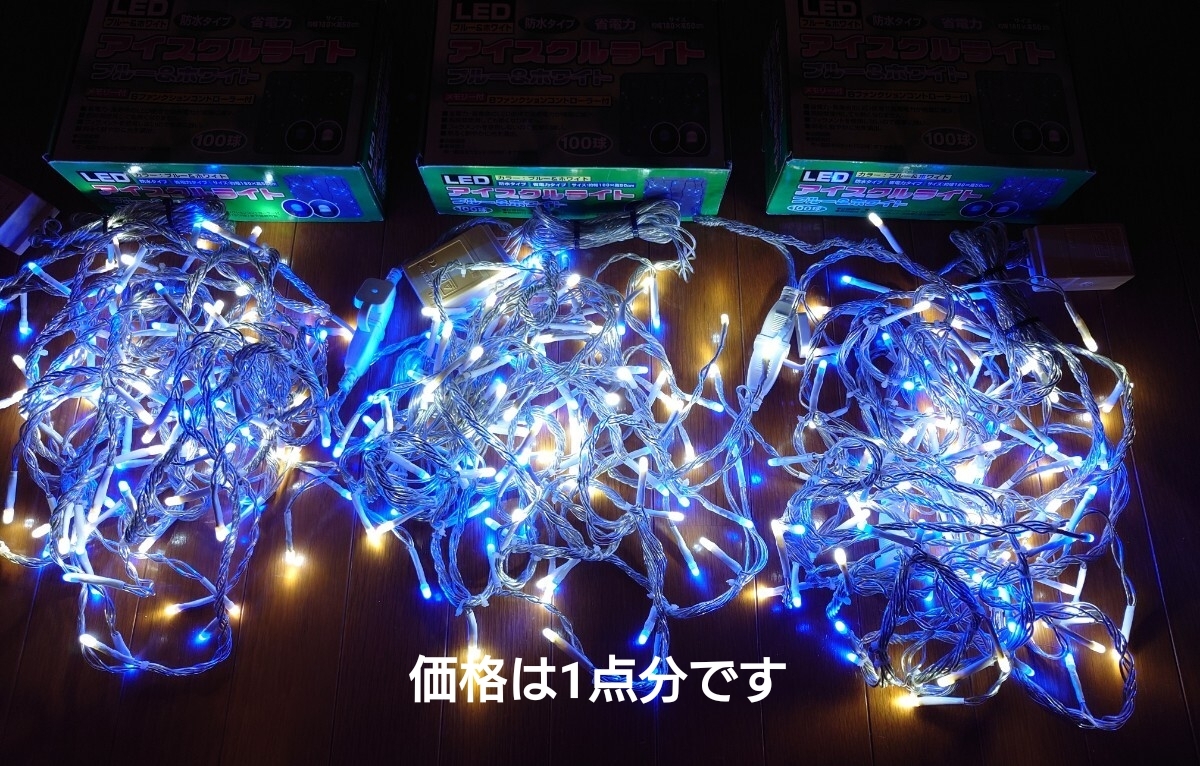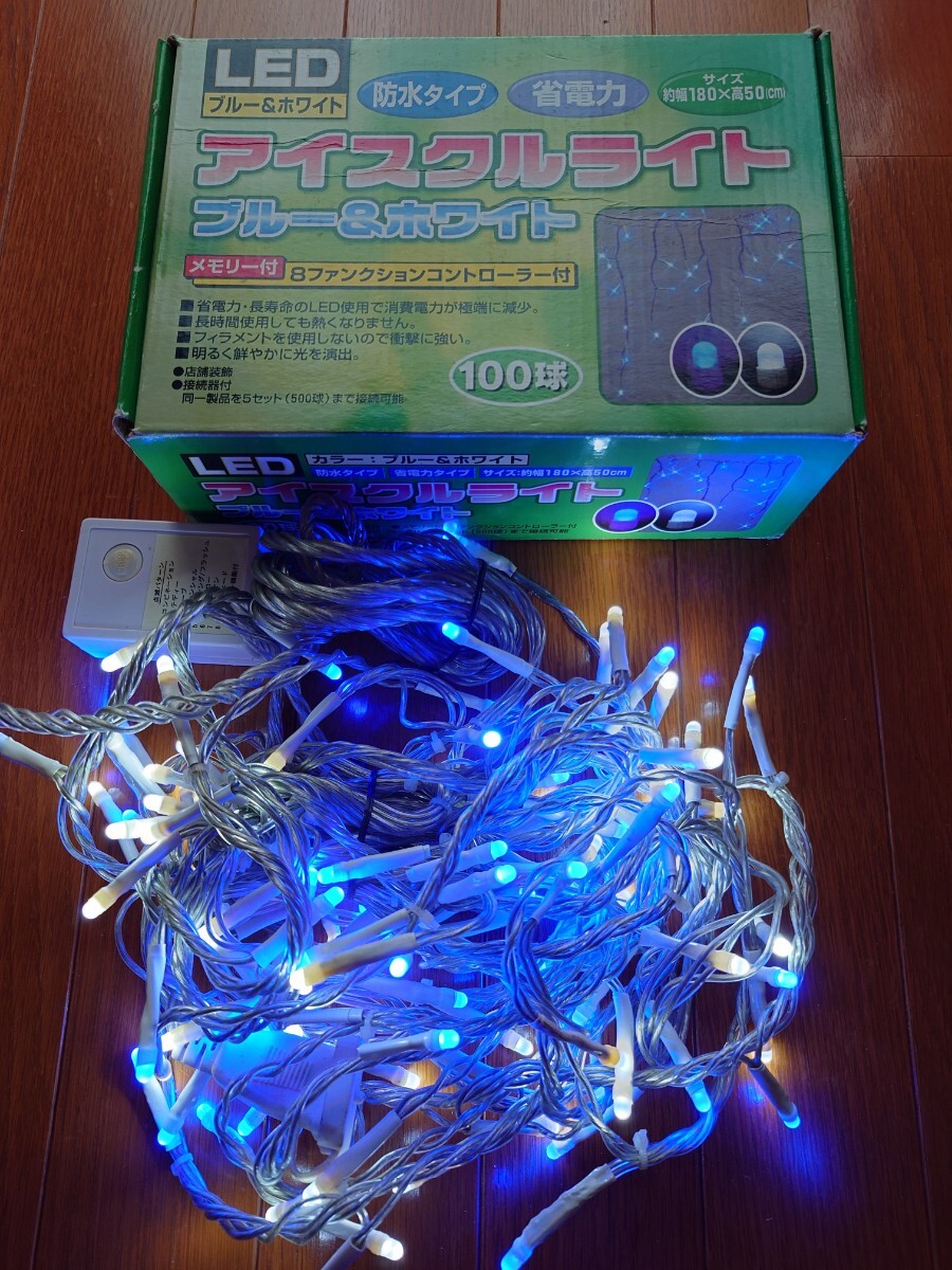 【カサハラ LED アイスクルライト つらら 100球】ブルー&ホワイト/連結可能/8パターンメモリー機能/防水/クリスマス/イルミネーション