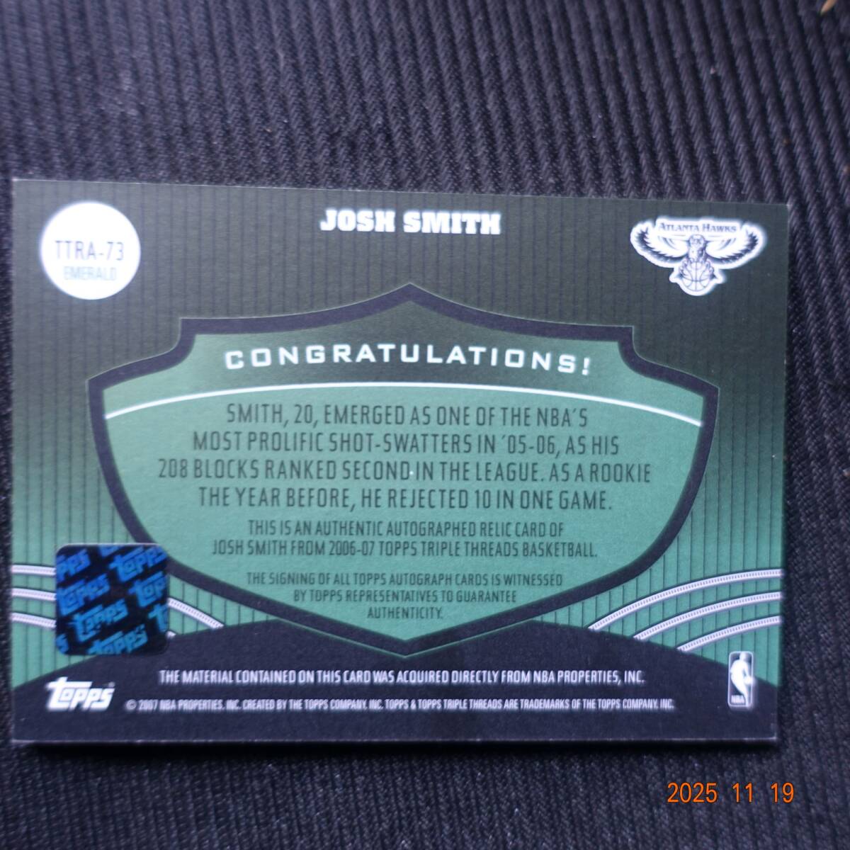 Josh Smith 2006-07 Topps Triple Threads No.73 Relics Autographs Emerald ##17/18