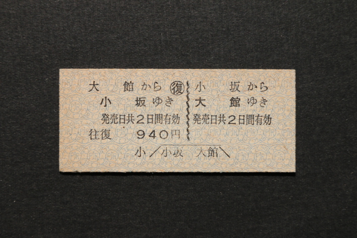 小坂鉄道往復乗車券 小坂から 大館ゆき 940円