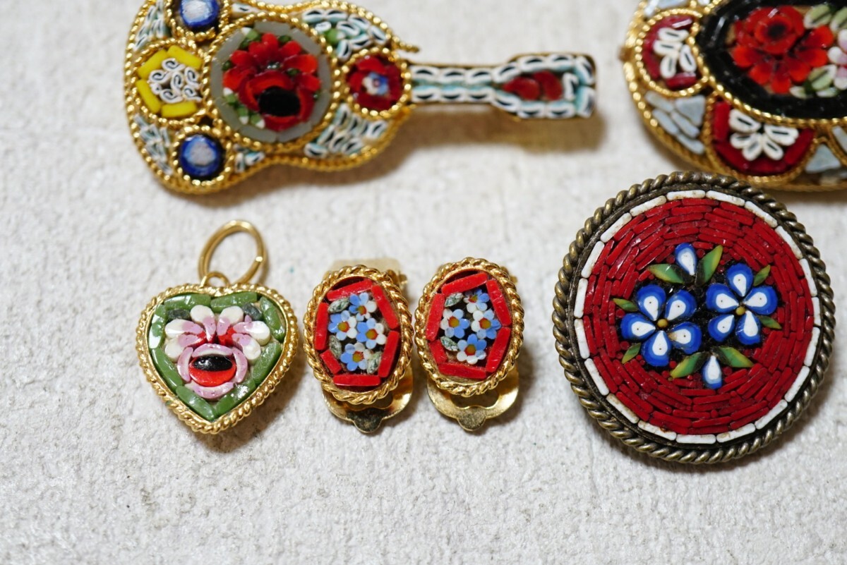 B2212 マイクロモザイク イタリア製 ペンダント ブローチなど ヴィンテージ アクセサリー 大量 セット まとめて おまとめ まとめ売り