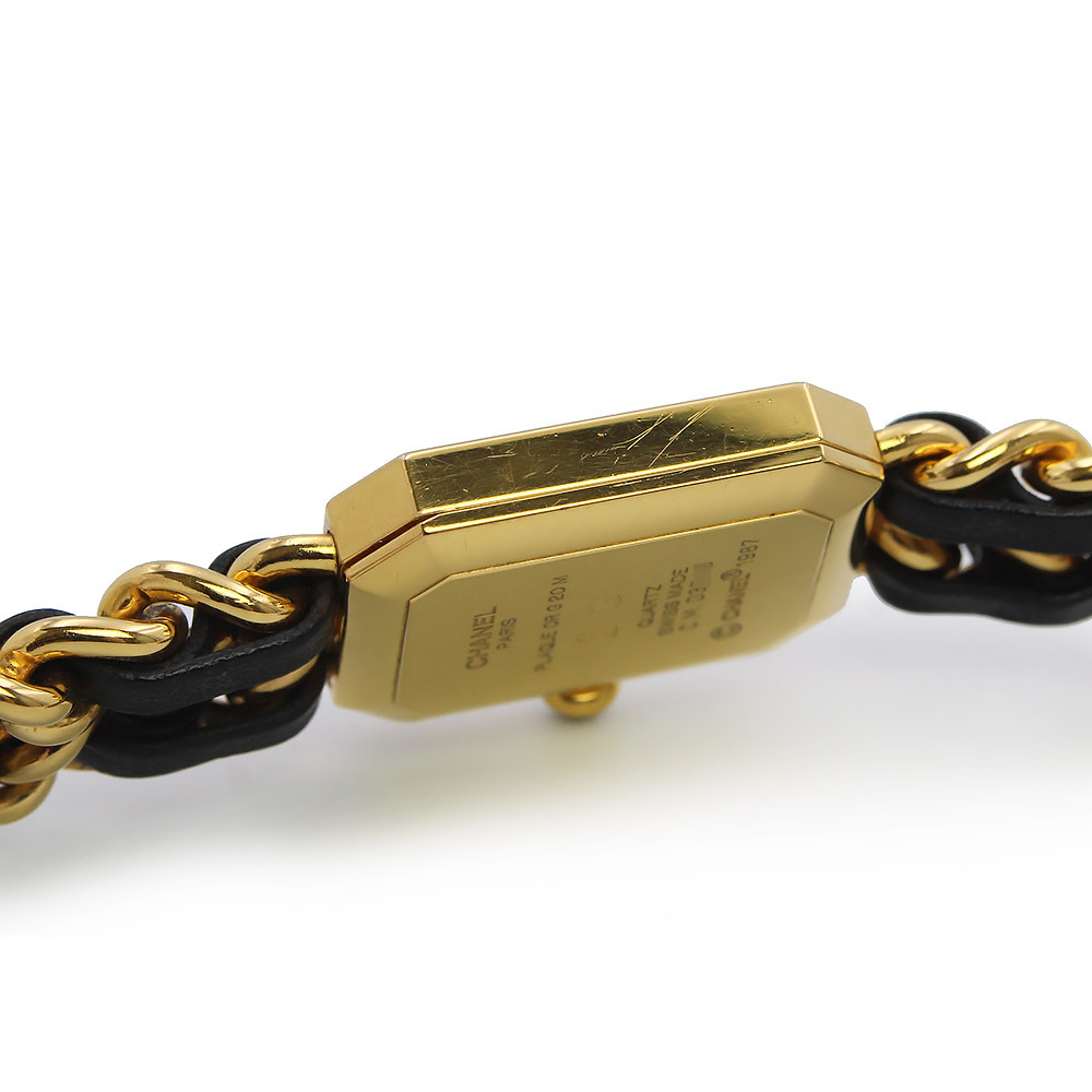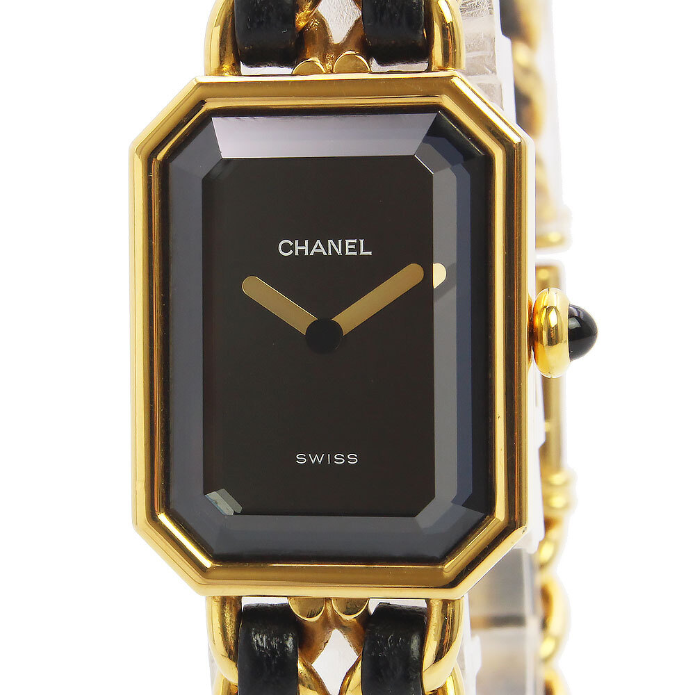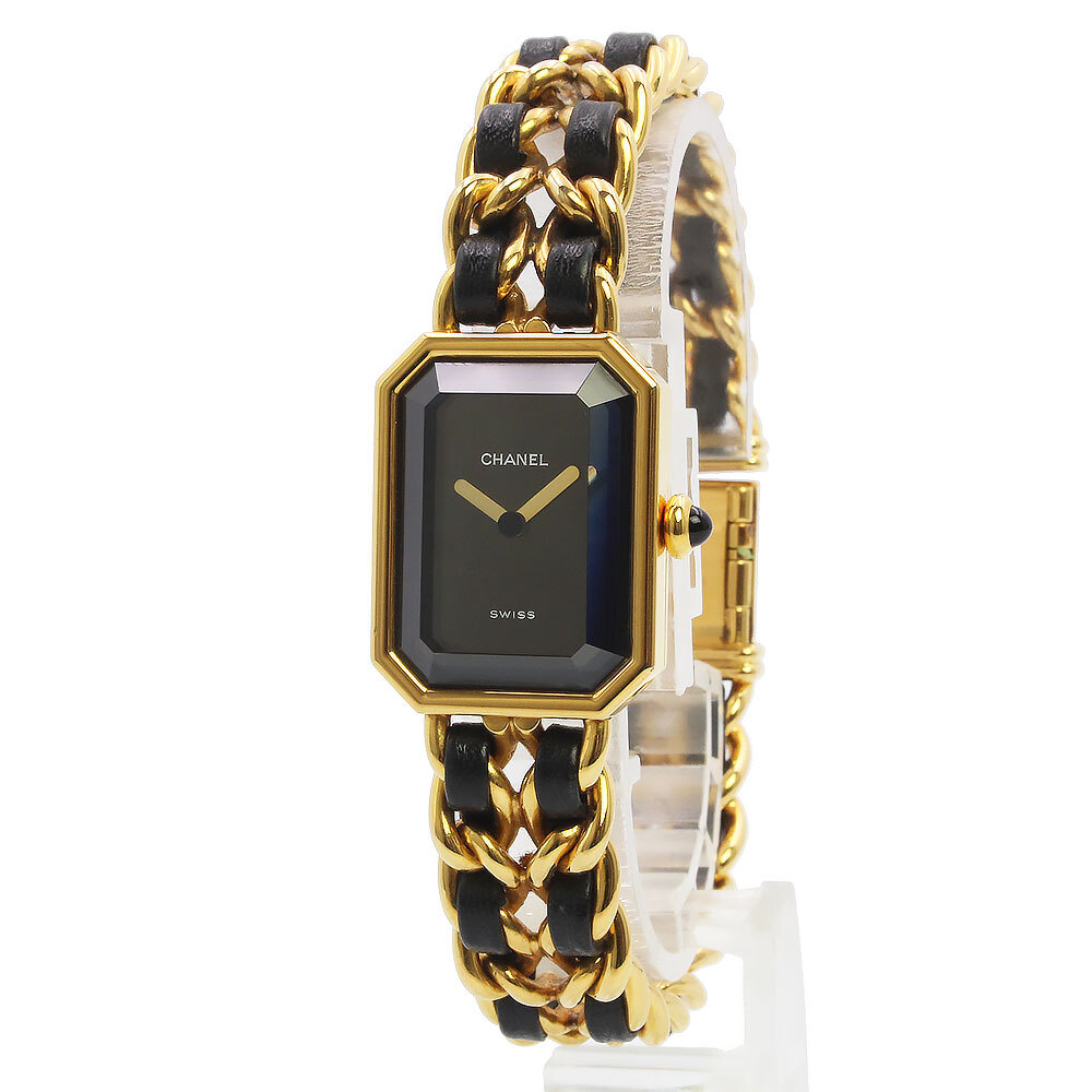 (中古)シャネル CHANEL プルミエール クオーツ 腕時計 XLサイズ カーフスキン レザー GP ブラック ゴールド H0001-XL