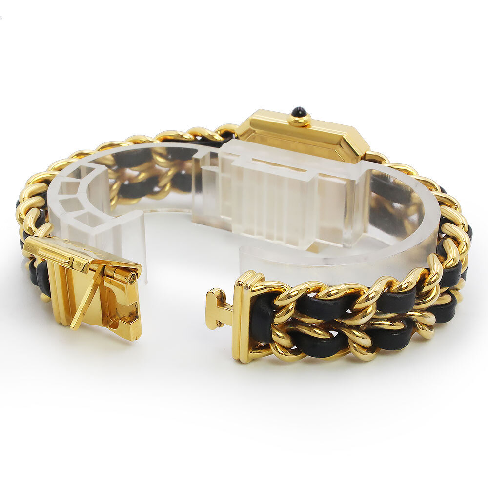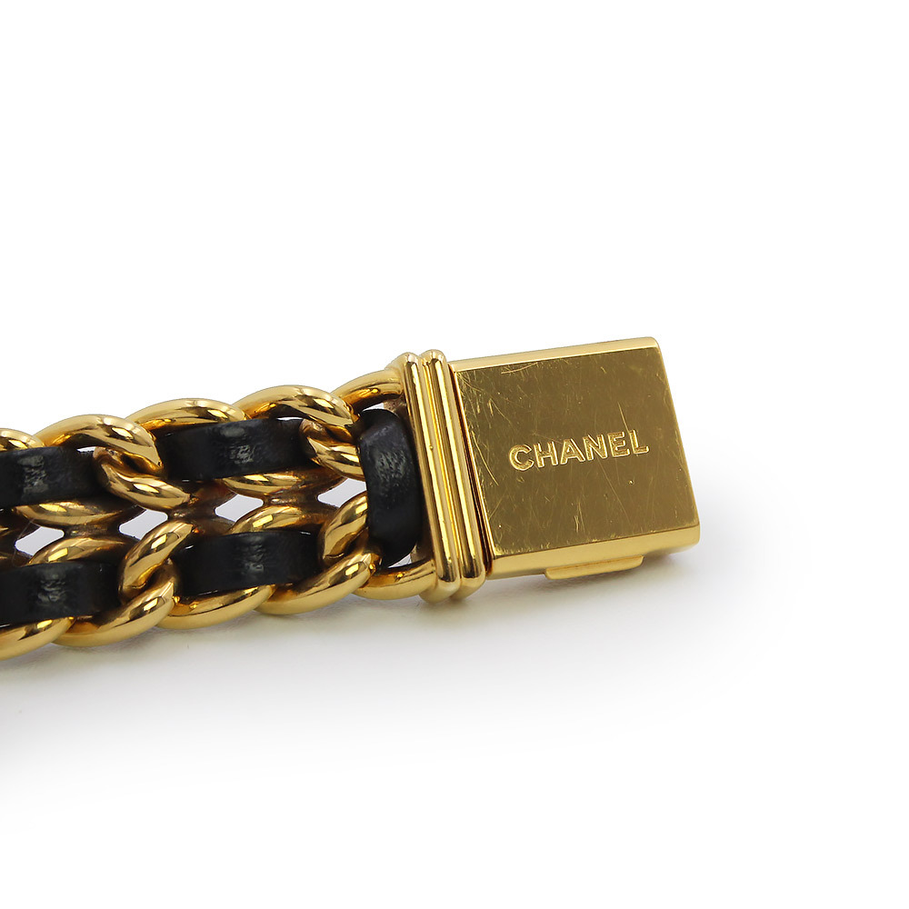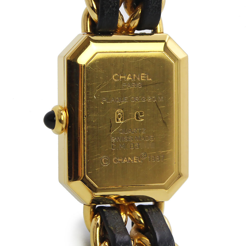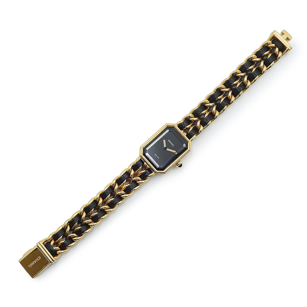 (中古)シャネル CHANEL プルミエール クオーツ 腕時計 XLサイズ カーフスキン レザー GP ブラック ゴールド H0001-XL